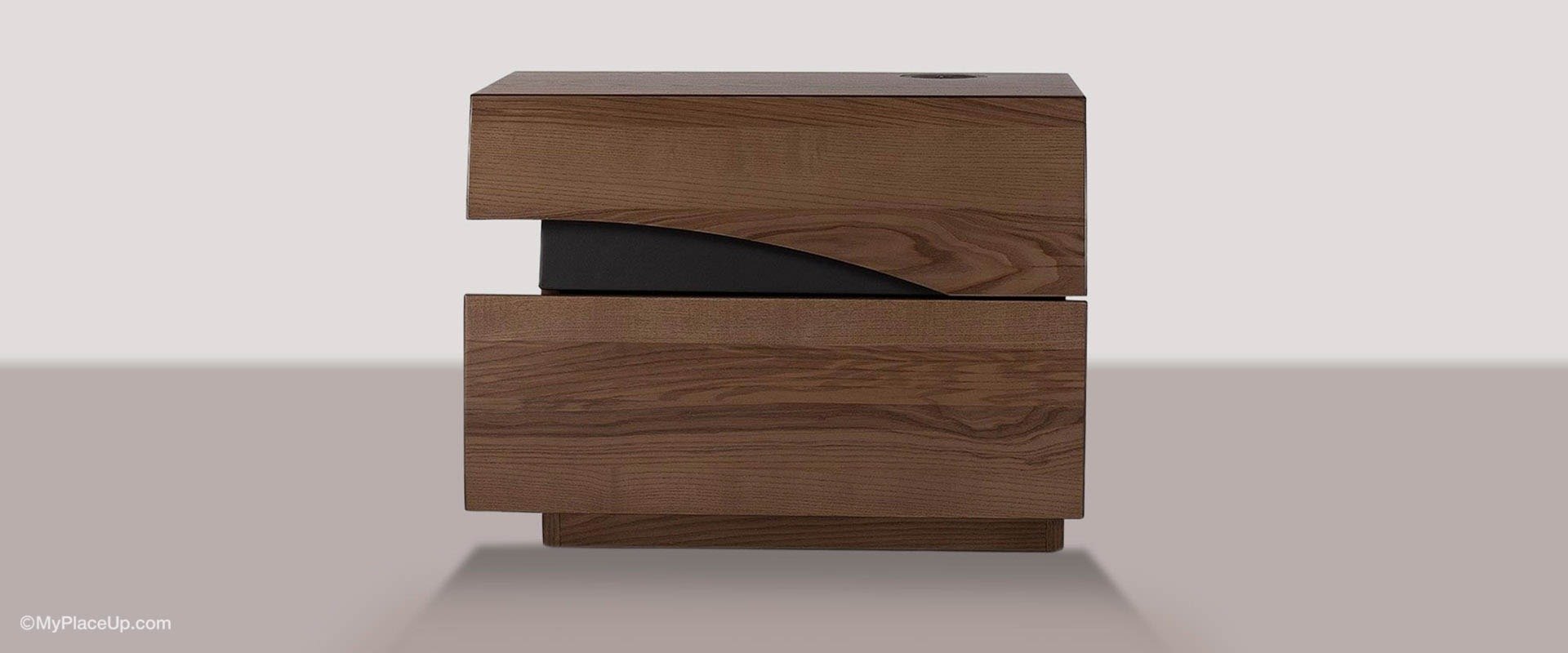 Το κομοδίνο Σάρα Ελιά είναι σχεδιασμένο με έντονες καμπύλες και κατασκευασμένο από φυσικά υλικά, αναζωογονεί και διαμορφώνει τον χώρο σας σε μια καλαίσθητη και κομψή παρουσία. Η εσωτερική δομή είναι από συμπαγή σκελετό μοριοσανίδας και mdf, ενώ είναι επενδεδυμένο mdf με φυσικό καπλαμά δρύς, δρύς rustic, δεσποτάκι, καρυδιά.