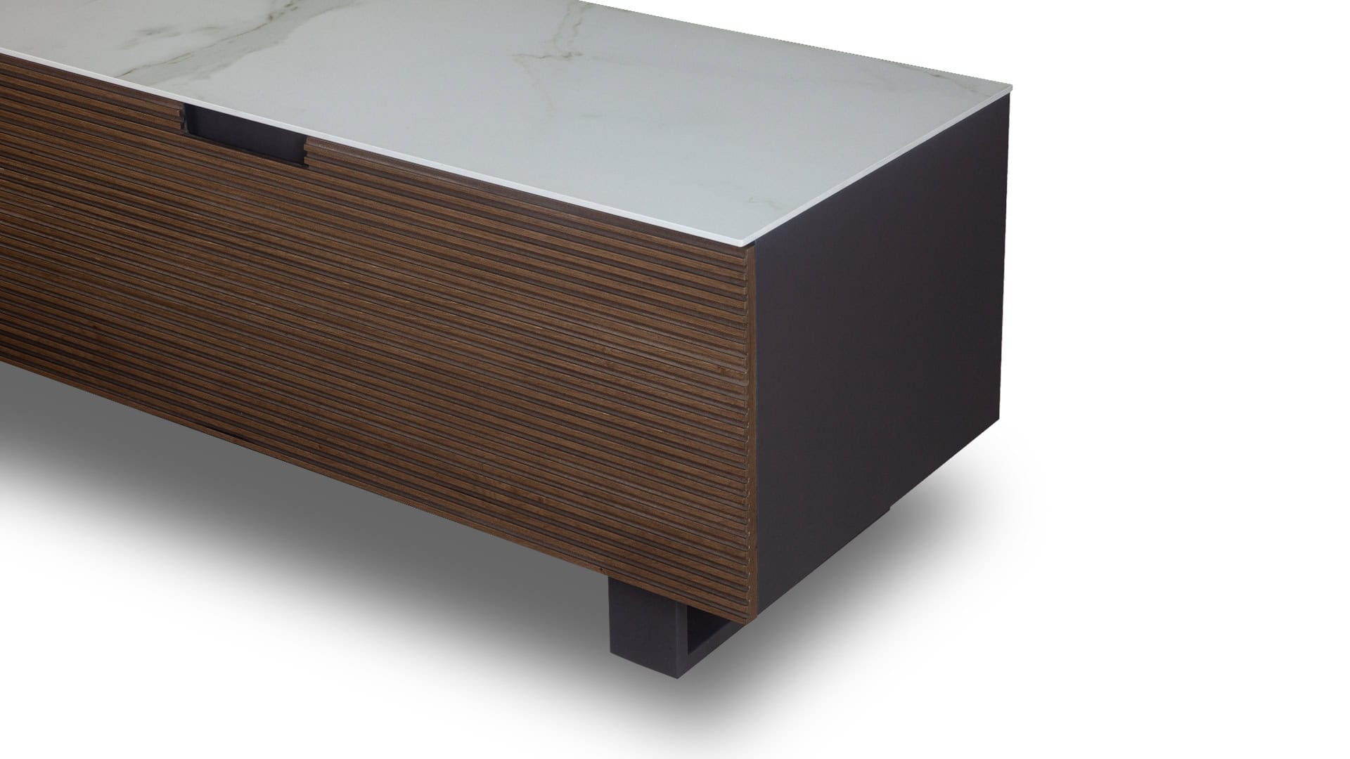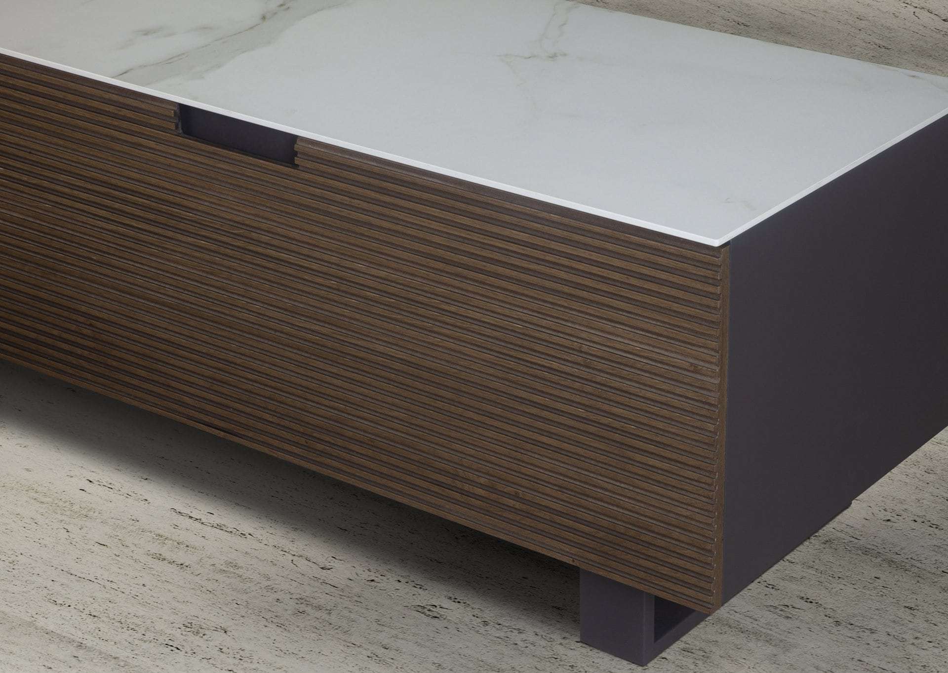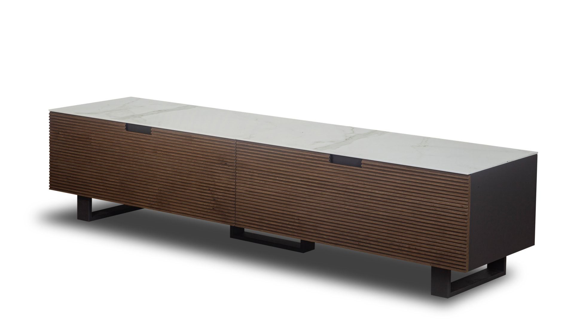 Έπιπλο TV Scratch. Ελληνικής Κατασκευής. Εύκαμπτο μασίφ δρυς και λεπτομέρειες λάκας, επιφάνεια κεραμική με επιλογή για Ματ ή Γυαλιστερό. Κατασκευάζεται με ποιοτικά υλικά σε χρώματα και σε διαστάσεις της επιλογής σας.