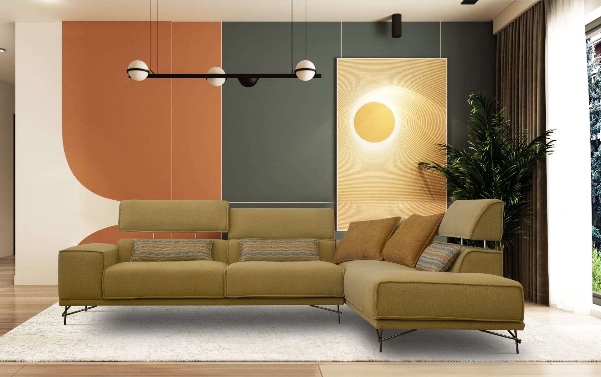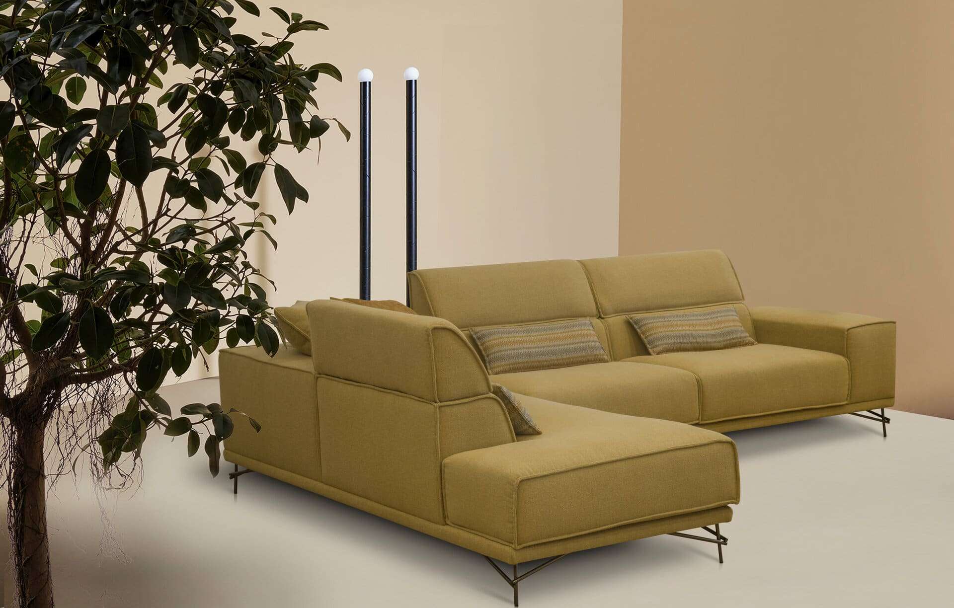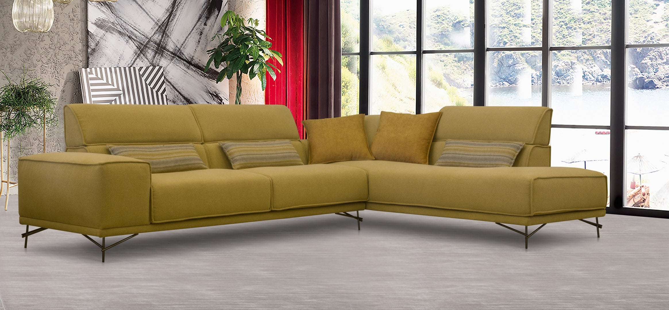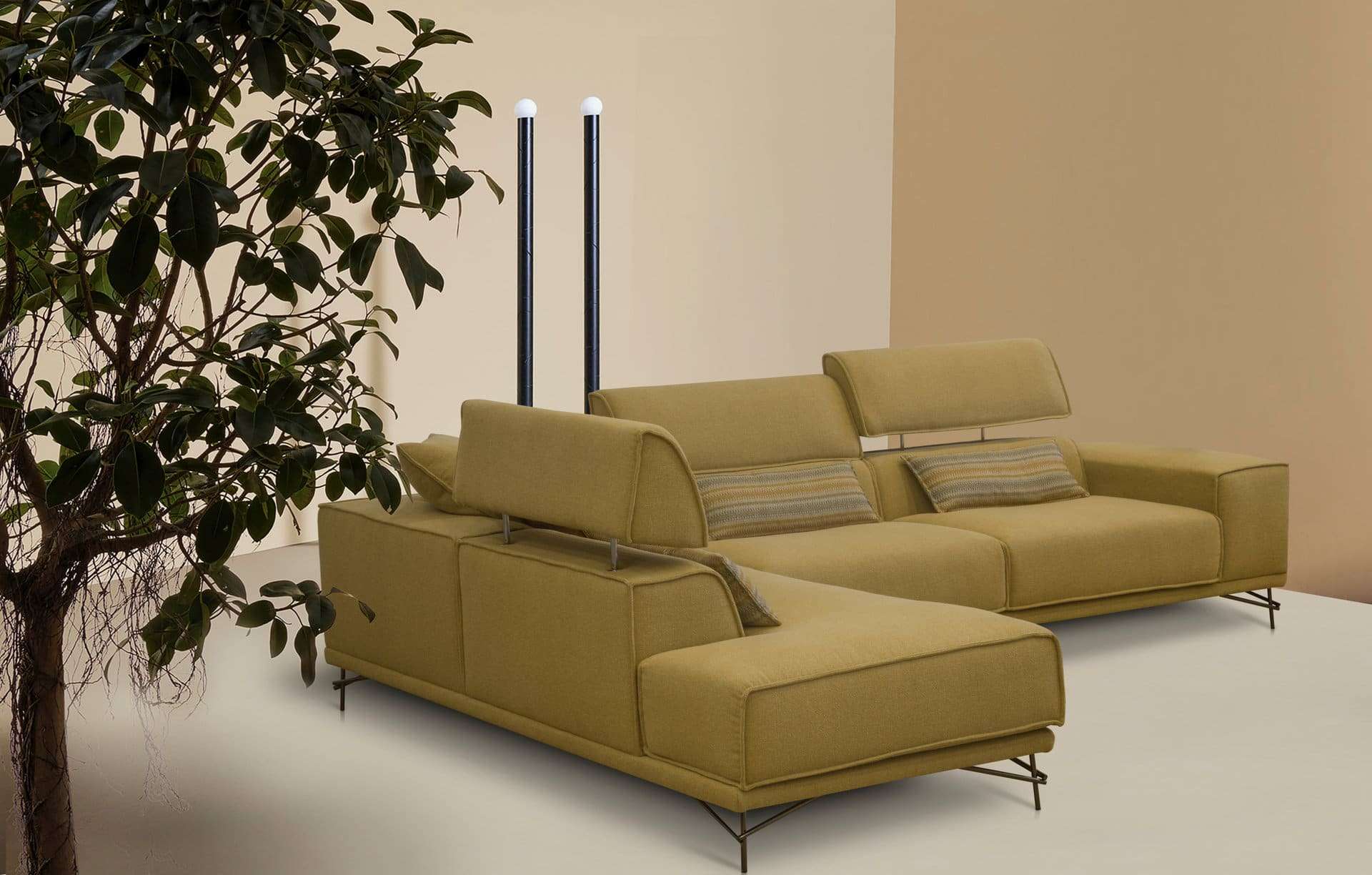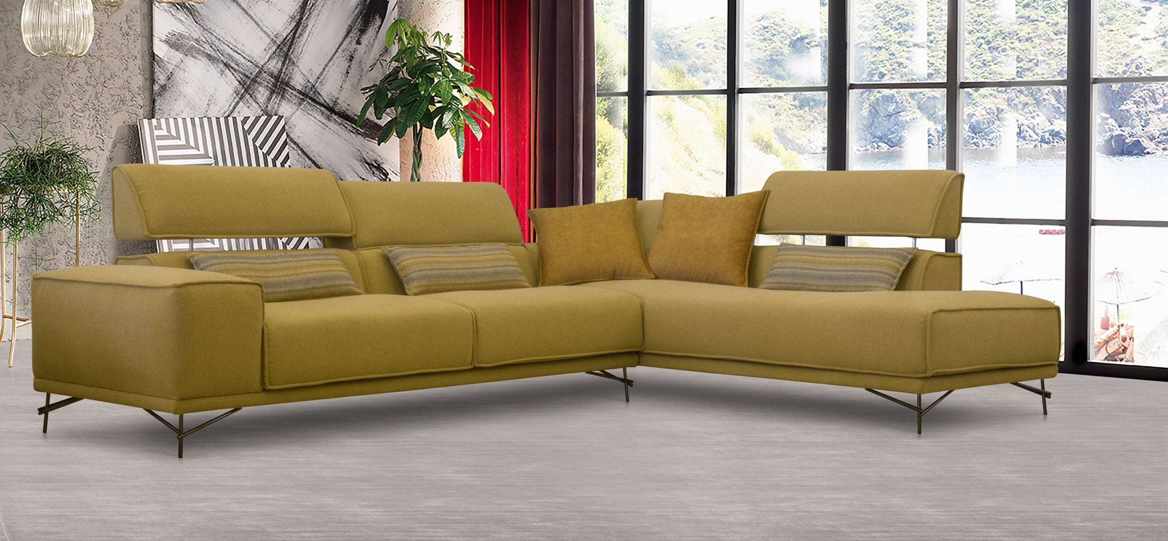 Γωνιακός καναπές 2 τεμαχίων, με λάστιχο υψηλής ποιότητας στο κάθισμα, ψηλά μεταλλικά πόδια και ηλεκτρικό μηχανισμό κατόπιν επιλογής σε όποιο προσκέφαλο επιθυμείτε. Διατίθεται σε διάφορες διαστάσεις, με ύφασμα & απόχρωση υφάσματος της επιλογής σας.