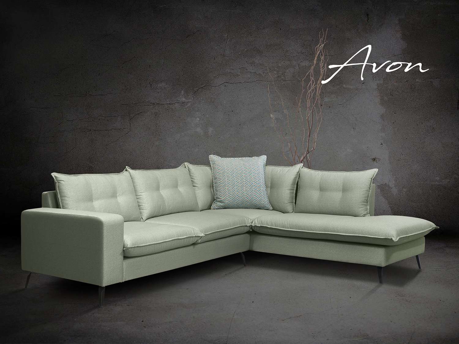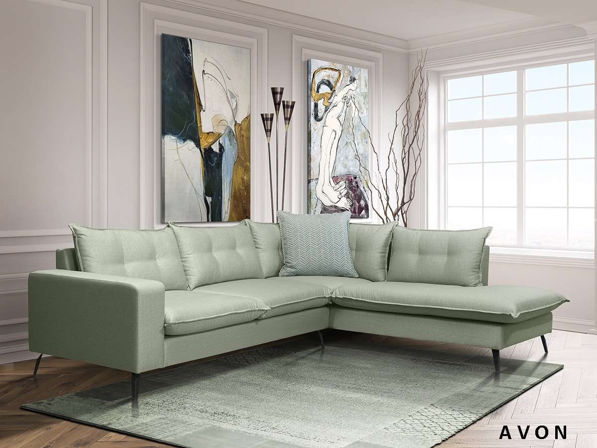 Γωνιακός καναπές Avon Ελληνικής κατασκευής. Διάσταση: 290cm x 230cm x 90cm Τα μαξιλάρια καθίσματος κατασκευάζονται από αφρό πολυουρεθάνης μέτριας σκληρότητας ενώ τα μαξιλάρια πλάτης είναι γεμισμένα με πολυεστερικές ίνες (conforel). Ο σκελετός του καναπέ είναι κατασκευασμένος από μασίφ ξυλεία (οξιά & λευκή ξυλεία) ενώ τη στήριξη των μαξιλαριών αναλαμβάνουν οι πυκνά τοποθετημένοι & πλεγμένοι ελαστικοί ιμάντες (φάσες). Το ψηλό πόδι , αποτρέπει το λέρωμα της βάσης του καναπέ από παπούτσια ενώ η απόσταση από το πάτωμα μας δίνει τη δυνατότητα να καθαρίζουμε εύκολα & γρήγορα κάτω από αυτόν. Διατίθεται σε διάφορες διαστάσεις, με ύφασμα & απόχρωση υφάσματος της επιλογής σας. Κατηγορία υφάσματος: αδιάβροχο - easy clean Δυνατότητα αλλαγών.