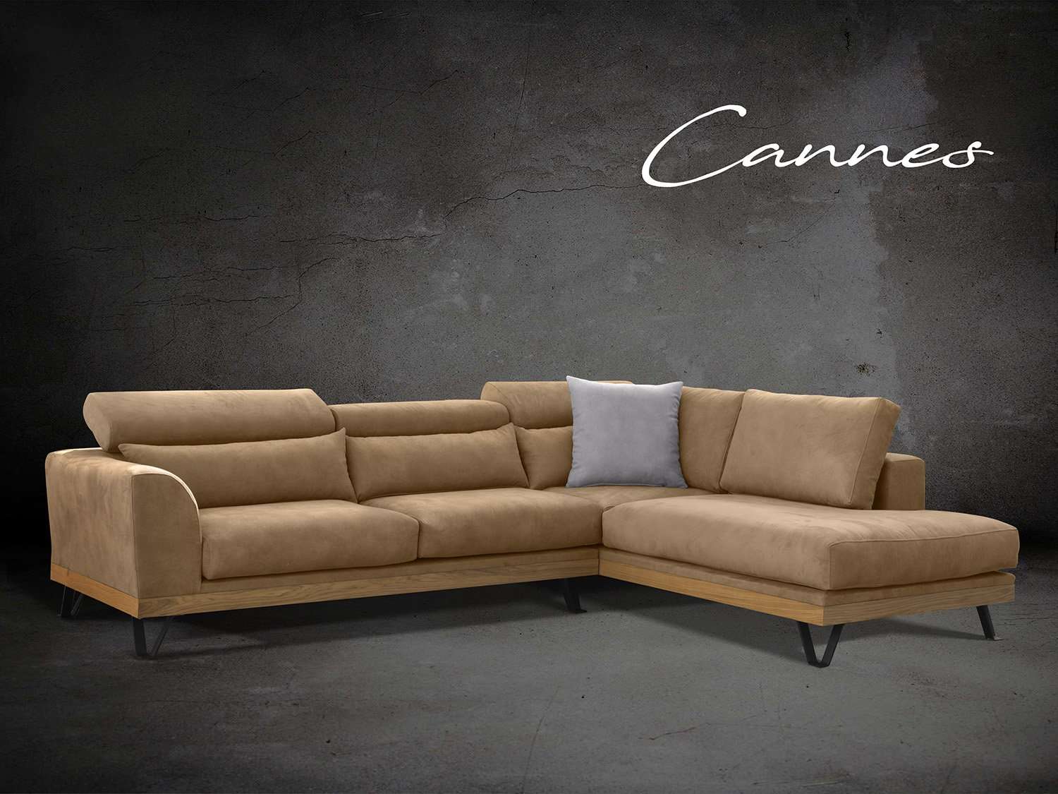 Γωνιακός καναπές Cannes wood Ελληνικής κατασκευής. Διάσταση: 320cm x 240cm x 105cm Τα μαξιλάρια καθίσματος κατασκευάζονται από αφρό πολυουρεθάνης μέτριας σκληρότητας ενώ τα μαξιλάρια πλάτης είναι γεμισμένα με πολυεστερικές ίνες (conforel). Ο σκελετός του καναπέ είναι κατασκευασμένος από μασίφ ξυλεία (οξιά & λευκή ξυλεία) ενώ τη στήριξη των μαξιλαριών αναλαμβάνουν οι πυκνά τοποθετημένοι & πλεγμένοι ελαστικοί ιμάντες (φάσες). Το ψηλό πόδι , αποτρέπει το λέρωμα της βάσης του καναπέ από παπούτσια ενώ η απόσταση από το πάτωμα μας δίνει τη δυνατότητα να καθαρίζουμε εύκολα & γρήγορα κάτω από αυτόν. Διατίθεται σε διάφορες διαστάσεις, με ύφασμα & απόχρωση υφάσματος της επιλογής σας. Επιλογή χρώματος στις ξύλινες διακοσμητικές επιφάνειες του καναπέ με την επιπλέον επιλογή να κατασκευαστεί χωρίς ξύλο Κατηγορία υφάσματος: αδιάβροχο - easy clean Δυνατότητα αλλαγών.