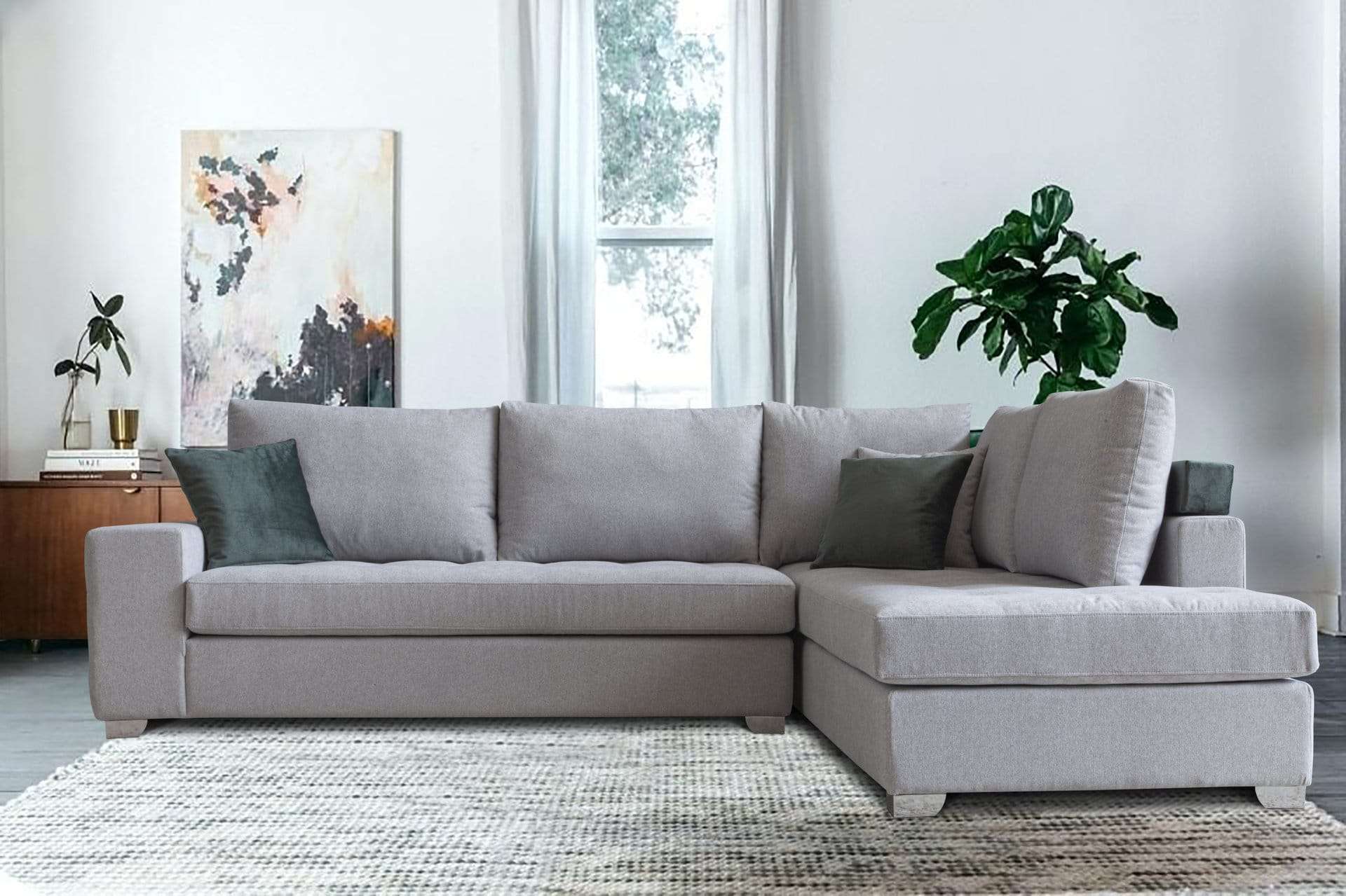 Γωνιακός καναπές 2 τεμαχίων, με λάστιχο υψηλής ποιότητας στο κάθισμα. Διατίθεται σε διάφορες διαστάσεις, με ύφασμα & απόχρωση υφάσματος της επιλογής σας.