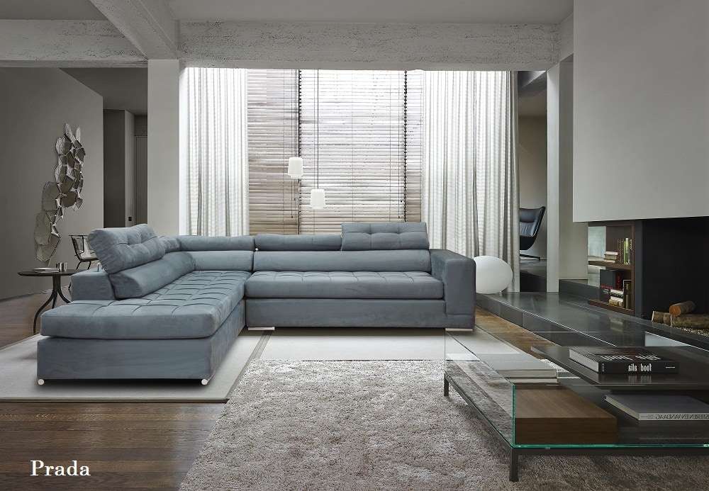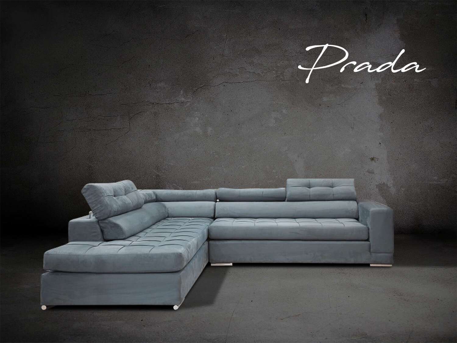 Γωνιακός καναπές Prada Ελληνικής κατασκευής. Διάσταση: 280cm x 220cm x 100cm Τα μαξιλάρια καθίσματος κατασκευάζονται από αφρό πολυουρεθάνης μέτριας σκληρότητας ενώ τα μαξιλάρια πλάτης είναι γεμισμένα με πολυεστερικές ίνες (conforel). Ο σκελετός του καναπέ είναι κατασκευασμένος από μασίφ ξυλεία (οξιά & λευκή ξυλεία) ενώ τη στήριξη των μαξιλαριών αναλαμβάνουν οι πυκνά τοποθετημένοι & πλεγμένοι ελαστικοί ιμάντες (φάσες). Μηχανισμοί ανάκλησης στο προσκέφαλο για άνετο κάθισμα και στήριξη στο κεφάλι. Διατίθεται σε διάφορες διαστάσεις, με ύφασμα & απόχρωση υφάσματος της επιλογής σας. Κατηγορία υφάσματος: αδιάβροχο - easy clean Δυνατότητα αλλαγών.