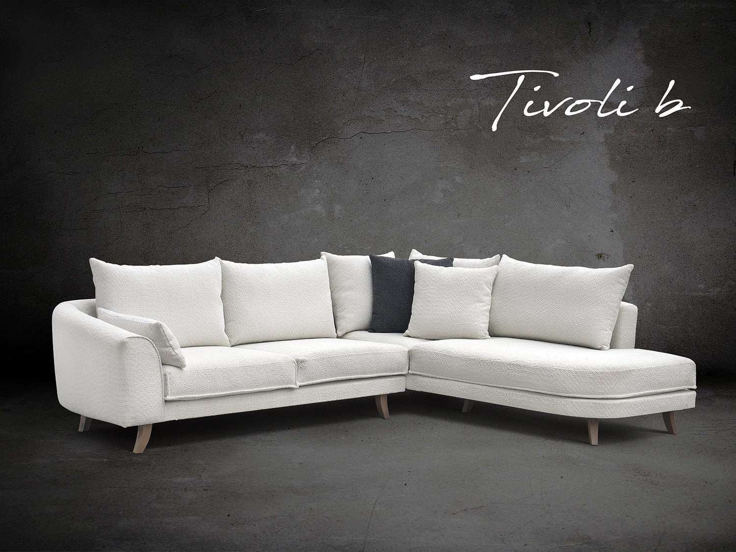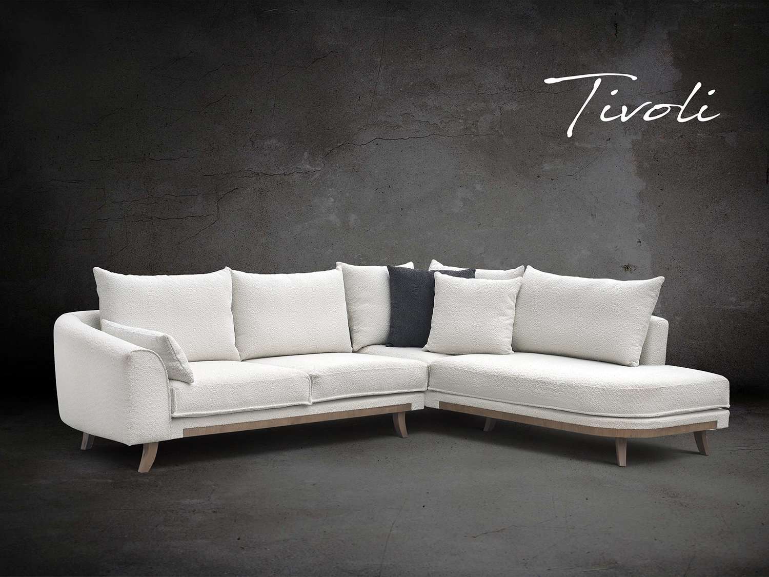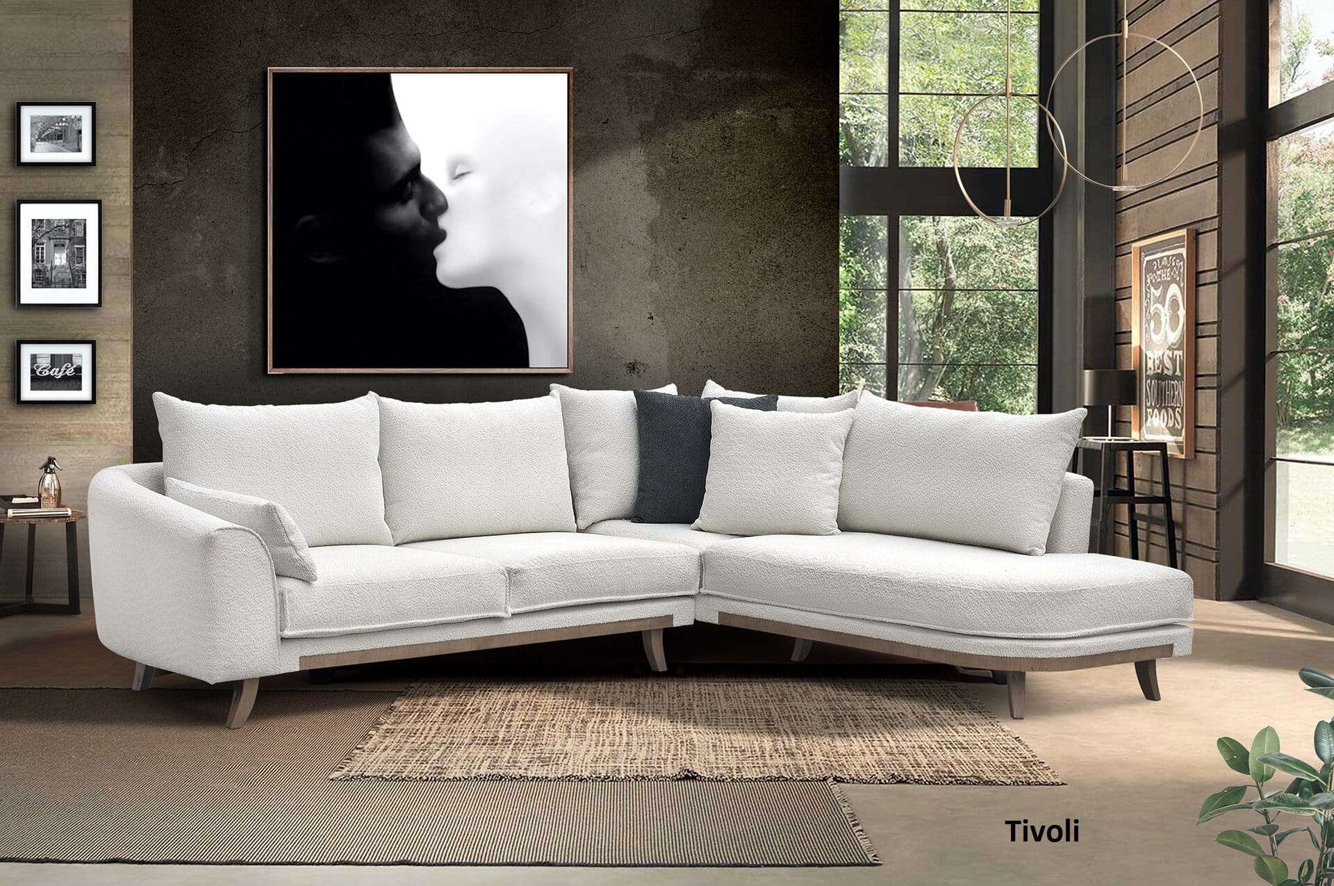 Γωνιακός καναπές Tivoli Ελληνικής κατασκευής. Διάσταση: 280cm x 220cm x 95cm Τα μαξιλάρια καθίσματος κατασκευάζονται από αφρό πολυουρεθάνης μέτριας σκληρότητας ενώ τα μαξιλάρια πλάτης είναι γεμισμένα με πολυεστερικές ίνες (conforel). Ο σκελετός του καναπέ είναι κατασκευασμένος από μασίφ ξυλεία (οξιά & λευκή ξυλεία) ενώ τη στήριξη των μαξιλαριών αναλαμβάνουν οι πυκνά τοποθετημένοι & πλεγμένοι ελαστικοί ιμάντες (φάσες). Το ψηλό πόδι , αποτρέπει το λέρωμα της βάσης του καναπέ από παπούτσια ενώ η απόσταση από το πάτωμα μας δίνει τη δυνατότητα να καθαρίζουμε εύκολα & γρήγορα κάτω από αυτόν. Διατίθεται σε διάφορες διαστάσεις, με ύφασμα & απόχρωση υφάσματος της επιλογής σας. Επιλογή χρώματος στις ξύλινες διακοσμητικές επιφάνειες του καναπέ με την επιπλέον επιλογή να κατασκευαστεί χωρίς ξύλο Κατηγορία υφάσματος: αδιάβροχο - easy clean Δυνατότητα αλλαγών.