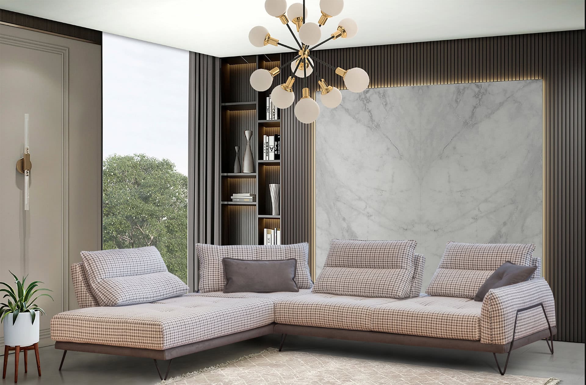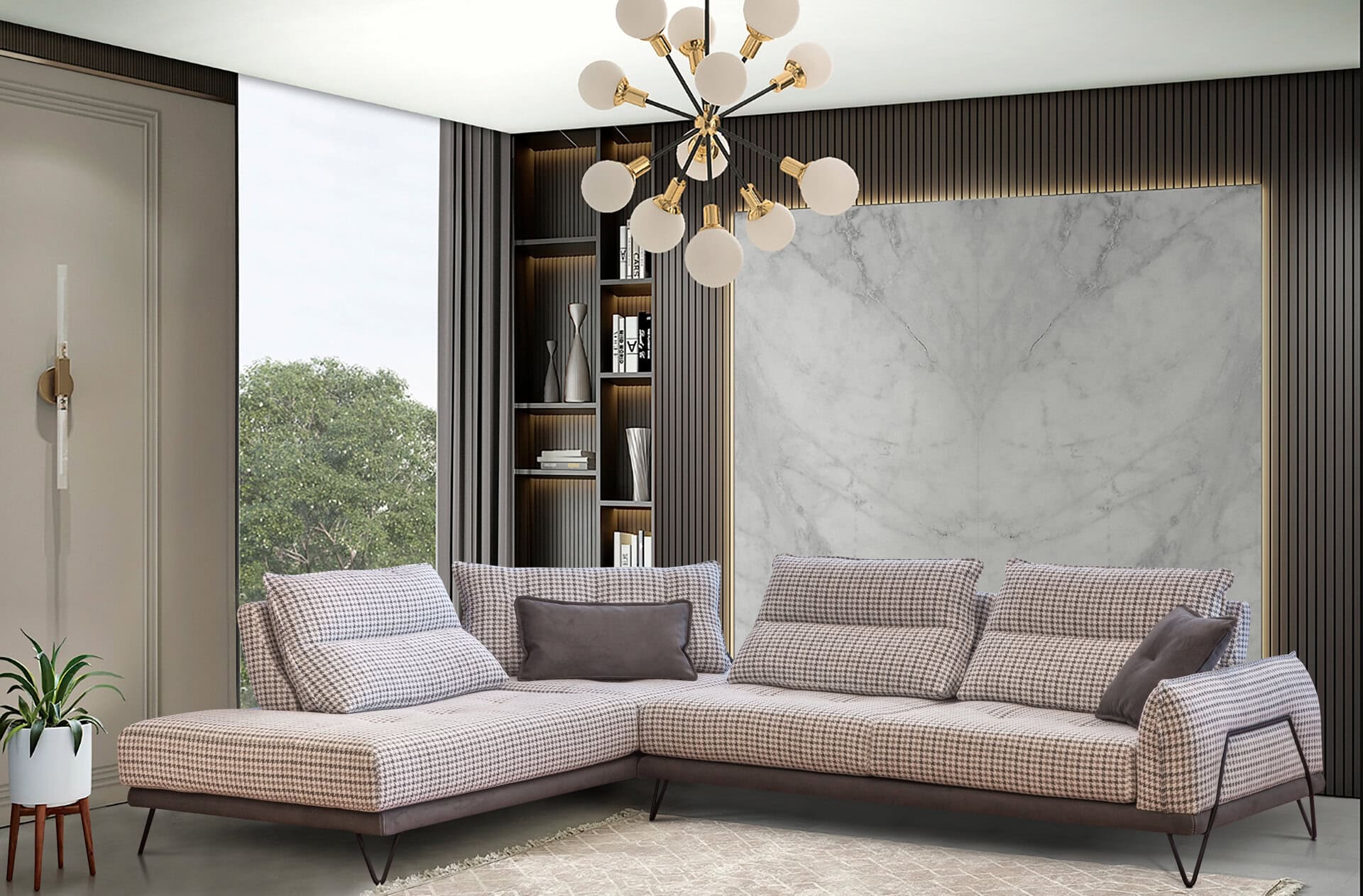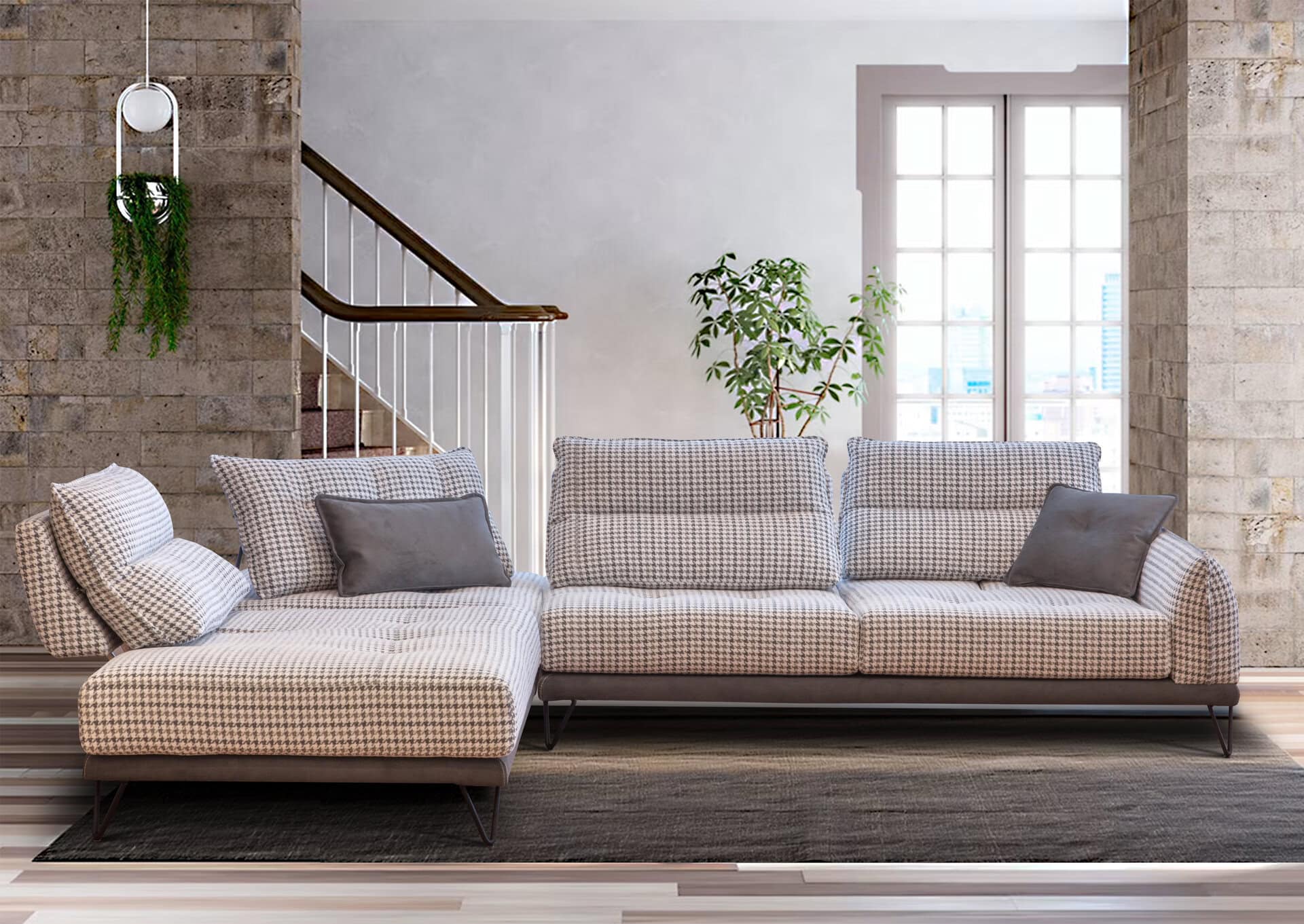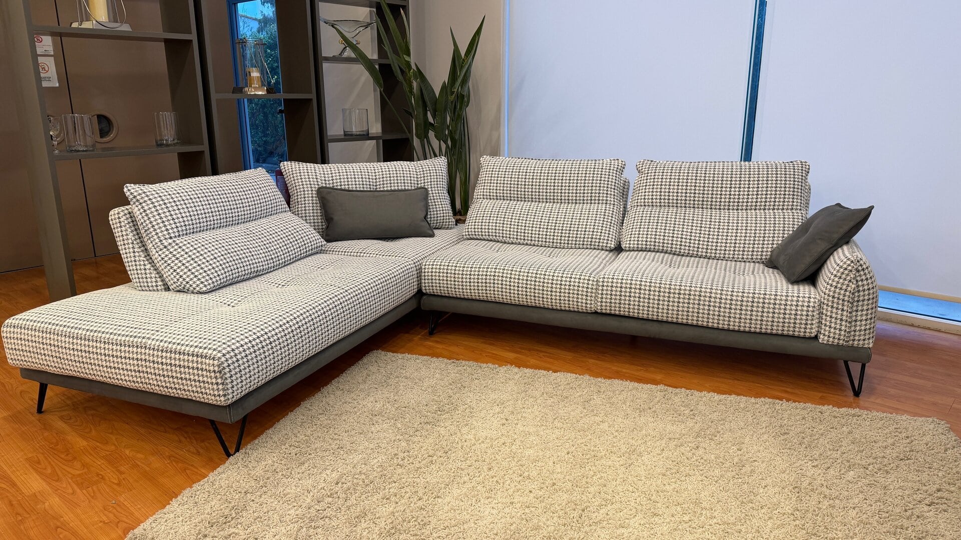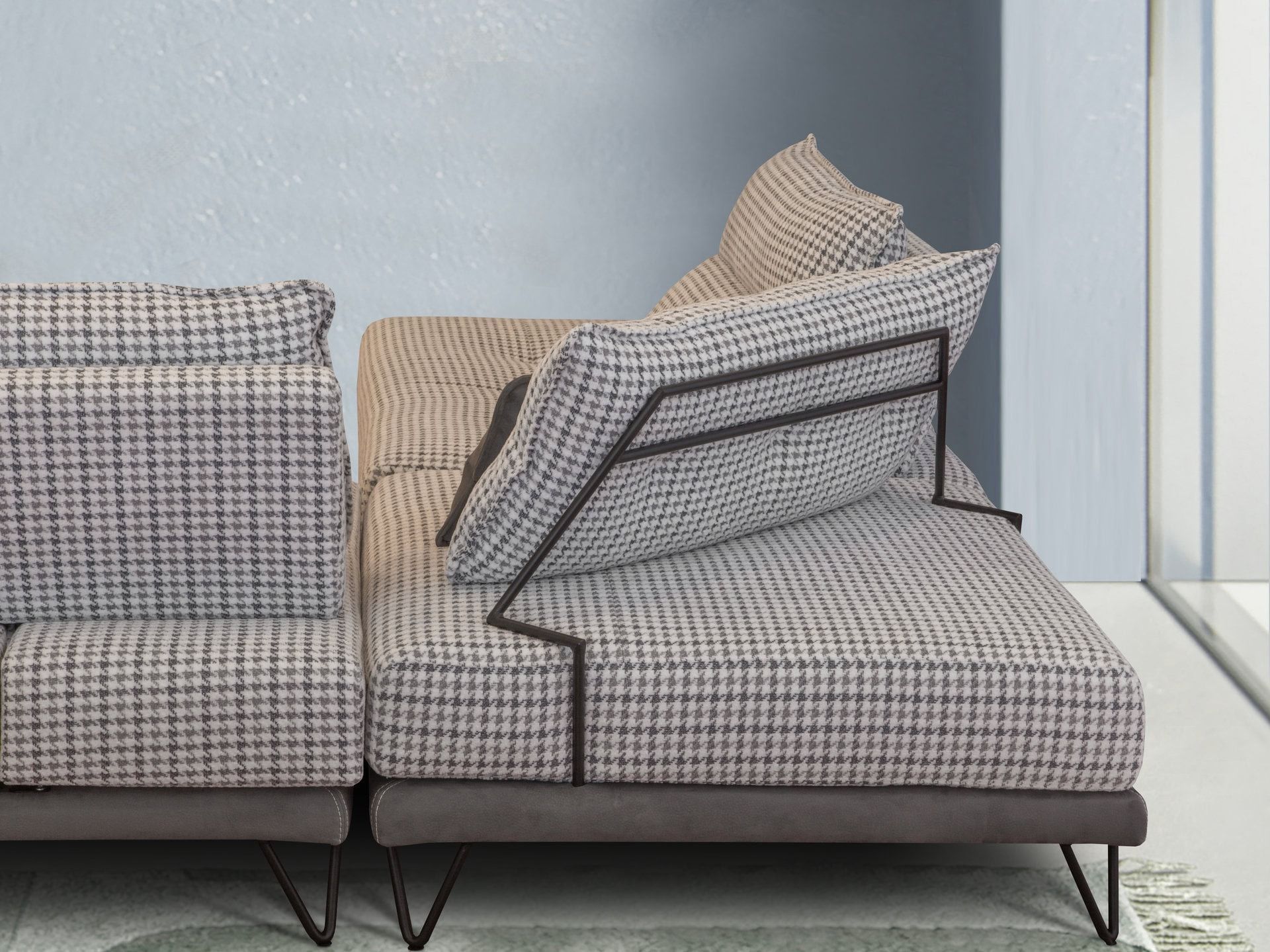 Γωνιακός καναπές 2 τεμαχίων, με λάστιχο υψηλής ποιότητας στο κάθισμα, ψηλά μεταλλικά πόδια και μηχανισμό στην πλάτη που μας δίνει όλο το βάθος του καναπέ. Διατίθεται σε διάφορες διαστάσεις, με ύφασμα & απόχρωση υφάσματος της επιλογής σας.