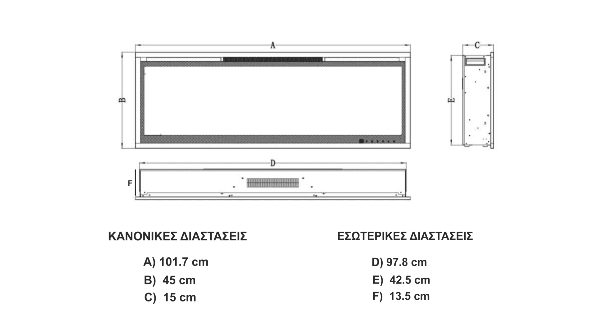 ΕΠΙΤΟΙΧΙΟ ΚΑΙ ΕΝΘΕΤΟ ΗΛΕΚΤΡΙΚΟ ΤΖΑΚΙ L.E.D LUXURIUS-S500 Model: LUXURIUS-S500 1600W ΤΕΧΝΙΚΑ ΧΑΡΑΚΤΗΡΙΣΤΙΚΑ Εφέ φλόγας με χρήση ξύλου Εφέ φλόγας με χρήση κρυστάλλων Εφέ φλόγας με χρήση ξύλου και κρυστάλλων Πρόσοψη από ίσιο γυαλί ασφαλείας Slim line υψηλή αισθητική με μικρή απόσταση από τον τοίχο Flat Line με μεγάλη οθόνη ( Ultra screen ) Τηλεχειριστήριο λειτουργιών Επιπλέον χειροκίνητη λειτουργία από την συσκευή ( Oθόνη αφής – touch screen ) Κρυμμένα κουμπιά (control panel) στην συσκευή για υψηλή αισθητική Αυτόματη απόκρυψη ψηφιακών ενδείξεων οθόνης L.E.D (5 δευτερόλεπτα) Hitense Master 3D εφέ φλόγας ( Premium ) Hitense Master 3D ειδικός κατοπτρισμός ρεαλιστικής απεικόνισης Ρεαλιστική κίνηση φλόγας ανάμεσα στα ξύλα Ρυθμιζόμενη ένταση φλόγας 5 επίπεδα (dimmer) Τεχνολογία εφέ με L.E.D 6) Επιλογές χρώματος φλόγας 1) Επιλογή Κλασσικής ρεαλιστικής φλόγας (Πορτοκαλί) 2) Επιλογή ρεαλιστικής φλόγας Μπλε (Frozen Blue) 3) Επιλογή Mix της Κλασσικής φλόγας μαζί με Μπλε (Frozen Blue) 4) Επιλογή κίτρινης φλόγας 5) Επιλογή μιξ κίτρινης φλόγας με πορτοκαλί 6) Επιλογή μιξ όλων των χρωμάτων 10 Επιλογές χρώματος φωτιζόμενης εστίας Ρυθμιζόμενη ένταση φωτεινότητας της εστίας 4 επίπεδα (dimmer) Αυτόματη εναλλαγή χρωμάτων εστίας ( κατ’επιλογήν ) Ενσωματωμένο σύστημα ήχου κρακινγκ (φλεγόμενου ξύλου) 2 Ρυθμίσεις έντασης ήχου 3 Επιλογές ταχύτητας της φλόγας Ρυθμιζόμενη θερμοκρασία από 15 – 30°C Χρονοδιακόπτης έως και 12 ώρες Ψηφιακές ενδείξεις θερμοκρασίας και χρονοδιακόπτη Δύο επιλογές θέρμανσης 800W / 1600W 1600W max Ξεχωριστή λειτουργία φλόγας-θέρμανσης Ασφάλεια θερμικής αποκοπής Σύστημα εισαγωγής αέρα από το εμπρός μέρος της συσκευής U.A.F.S ( Ultra Air Flow System ) Εξαγωγή ζεστού αέρα από το εμπρός μέρος της συσκευής Κρυμμένοι αεραγωγοί U.A.F.S για τέλεια αισθητική Τοποθέτηση επιτοίχια Τοποθέτηση εντοιχιζόμενη Σειριακός Αριθμός Μοναδικότητας Κατασκευάζεται με την τεχνολογία Erp (Eco Design Europe) για χαμηλή κατανάλωση ρεύματος Κατασκευάζεται βάσει των πιστοποιήσεων ποιότητας της Ευρωπαϊκής Ένωσης ( CE ) Ιδανικό για σπίτι , ξενοδοχείο, καφετέριες , εστιατόρια Διαστάσεις 127,5cm x 15cm x 45cm ( M x Π x Υ ) Βάρος 15kg Πολλές επιλογές τοποθέτησης Επιτοίχια τοποθέτηση Ένθετη τοποθέτηση Επιτοίχια και Ένθετη Εγγύηση ποιότητας Ηitense 2 χρόνια εγγύηση Περιλαμβάνεται στην συσκευασία ασύρματο χειριστήριο (κοντρόλ) Περιλαμβάνεται στην συσκευασία 1 πακέτο με ξύλα Περιλαμβάνεται στην συσκευασία 1 πακέτο με ειδικούς διάφανους κρυστάλλους ( Μικρούς ) Περιλαμβάνεται στην συσκευασία 1 πακέτο με ειδικούς διάφανους κρυστάλλους ( Μεγάλους ) Περιλαμβάνεται στην συσκευασία όλο το πακέτο στήριξης τοίχου (βάση , βίδες , ούπα ) Περιλαμβάνεται στην συσκευασία βιβλιαράκι με οδηγίες χρήσης και τοποθέτησης Περιλαμβάνεται στην συσκευασία ασύρματο χειριστήριο (κοντρόλ) Περιλαμβάνεται στην συσκευασία όλο το πακέτο στήριξης (βάση , βίδες , ούπα ) Περιλαμβάνεται στην συσκευασία βιβλιαράκι με οδηγίες χρήσης και τοποθέτησης www.hitense.gr
