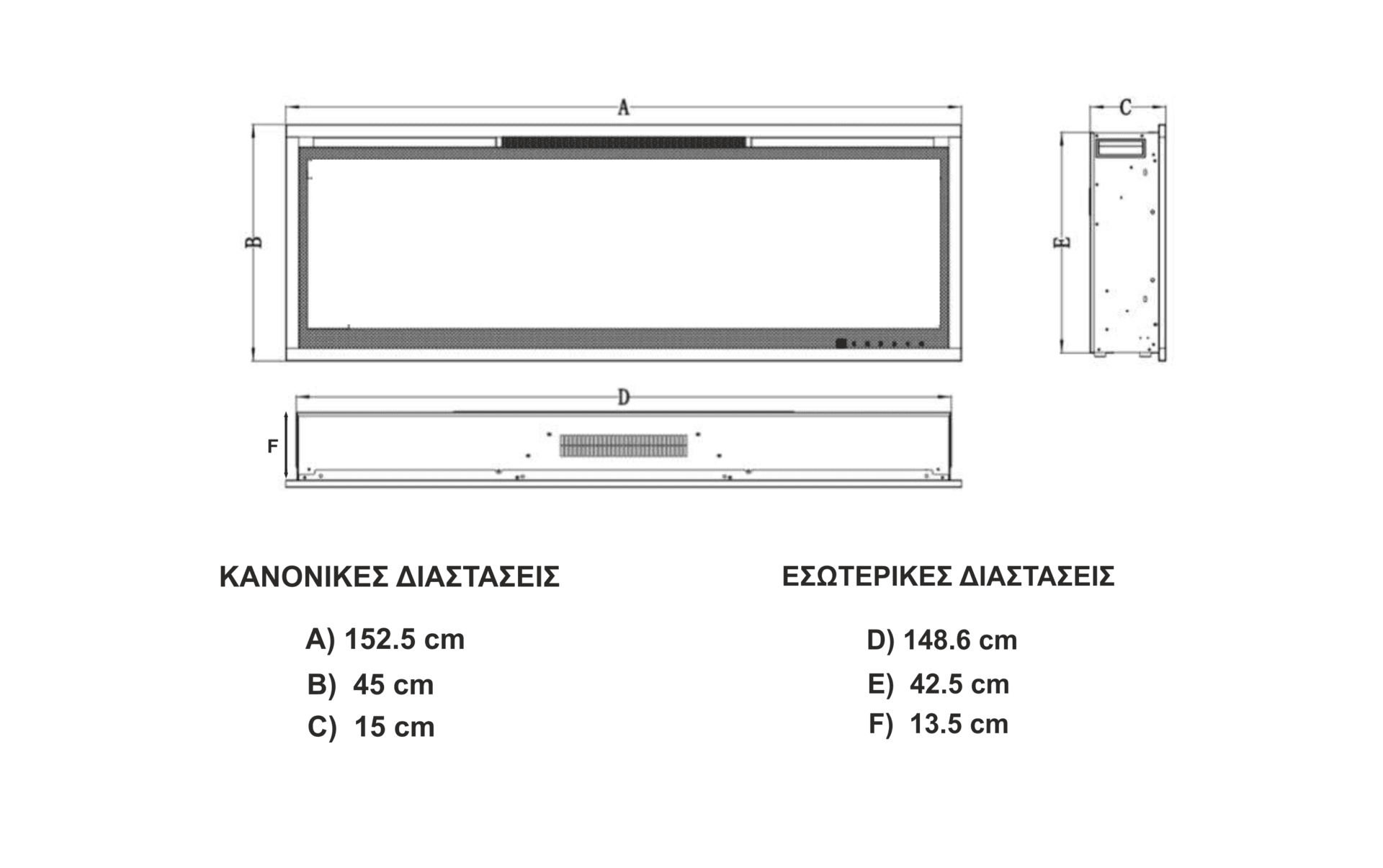ΕΠΙΤΟΙΧΙΟ ΚΑΙ ΕΝΘΕΤΟ ΗΛΕΚΤΡΙΚΟ ΤΖΑΚΙ L.E.D LUXURIUS-S600 Model: LUXURIUS-S600 1600W ΤΕΧΝΙΚΑ ΧΑΡΑΚΤΗΡΙΣΤΙΚΑ Εφέ φλόγας με χρήση ξύλου Εφέ φλόγας με χρήση κρυστάλλων Εφέ φλόγας με χρήση ξύλου και κρυστάλλων Πρόσοψη από ίσιο γυαλί ασφαλείας Slim line υψηλή αισθητική με μικρή απόσταση από τον τοίχο Flat Line με μεγάλη οθόνη ( Ultra screen ) Τηλεχειριστήριο λειτουργιών Επιπλέον χειροκίνητη λειτουργία από την συσκευή ( Oθόνη αφής – touch screen ) Κρυμμένα κουμπιά (control panel) στην συσκευή για υψηλή αισθητική Αυτόματη απόκρυψη ψηφιακών ενδείξεων οθόνης L.E.D (5 δευτερόλεπτα) Hitense Master 3D εφέ φλόγας ( Premium ) Hitense Master 3D ειδικός κατοπτρισμός ρεαλιστικής απεικόνισης Ρεαλιστική κίνηση φλόγας ανάμεσα στα ξύλα Ρυθμιζόμενη ένταση φλόγας 5 επίπεδα (dimmer) Τεχνολογία εφέ με L.E.D 6) Επιλογές χρώματος φλόγας 1) Επιλογή Κλασσικής ρεαλιστικής φλόγας (Πορτοκαλί) 2) Επιλογή ρεαλιστικής φλόγας Μπλε (Frozen Blue) 3) Επιλογή Mix της Κλασσικής φλόγας μαζί με Μπλε (Frozen Blue) 4) Επιλογή κίτρινης φλόγας 5) Επιλογή μιξ κίτρινης φλόγας με πορτοκαλί 6) Επιλογή μιξ όλων των χρωμάτων 10 Επιλογές χρώματος φωτιζόμενης εστίας Ρυθμιζόμενη ένταση φωτεινότητας της εστίας 4 επίπεδα (dimmer) Αυτόματη εναλλαγή χρωμάτων εστίας ( κατ’επιλογήν ) Ενσωματωμένο σύστημα ήχου κρακινγκ (φλεγόμενου ξύλου) 2 Ρυθμίσεις έντασης ήχου 3 Επιλογές ταχύτητας της φλόγας Ρυθμιζόμενη θερμοκρασία από 15 – 30°C Χρονοδιακόπτης έως και 12 ώρες Ψηφιακές ενδείξεις θερμοκρασίας και χρονοδιακόπτη Δύο επιλογές θέρμανσης 800W / 1600W 1600W max Ξεχωριστή λειτουργία φλόγας-θέρμανσης Ασφάλεια θερμικής αποκοπής Σύστημα εισαγωγής αέρα από το εμπρός μέρος της συσκευής U.A.F.S ( Ultra Air Flow System ) Εξαγωγή ζεστού αέρα από το εμπρός μέρος της συσκευής Κρυμμένοι αεραγωγοί U.A.F.S για τέλεια αισθητική Τοποθέτηση επιτοίχια Τοποθέτηση εντοιχιζόμενη Σειριακός Αριθμός Μοναδικότητας Κατασκευάζεται με την τεχνολογία Erp (Eco Design Europe) για χαμηλή κατανάλωση ρεύματος Κατασκευάζεται βάσει των πιστοποιήσεων ποιότητας της Ευρωπαϊκής Ένωσης ( CE ) Ιδανικό για σπίτι , ξενοδοχείο, καφετέριες , εστιατόρια Διαστάσεις 152,5cm x 15cm x 45cm ( M x Π x Υ ) Βάρος 15kg Πολλές επιλογές τοποθέτησης Επιτοίχια τοποθέτηση Ένθετη τοποθέτηση Επιτοίχια και Ένθετη Εγγύηση ποιότητας Ηitense 2 χρόνια εγγύηση Περιλαμβάνεται στην συσκευασία ασύρματο χειριστήριο (κοντρόλ) Περιλαμβάνεται στην συσκευασία 1 πακέτο με ξύλα Περιλαμβάνεται στην συσκευασία 1 πακέτο με ειδικούς διάφανους κρυστάλλους ( Μικρούς ) Περιλαμβάνεται στην συσκευασία 1 πακέτο με ειδικούς διάφανους κρυστάλλους ( Μεγάλους ) Περιλαμβάνεται στην συσκευασία όλο το πακέτο στήριξης τοίχου (βάση , βίδες , ούπα ) Περιλαμβάνεται στην συσκευασία βιβλιαράκι με οδηγίες χρήσης και τοποθέτησης Περιλαμβάνεται στην συσκευασία ασύρματο χειριστήριο (κοντρόλ) Περιλαμβάνεται στην συσκευασία όλο το πακέτο στήριξης (βάση , βίδες , ούπα ) Περιλαμβάνεται στην συσκευασία βιβλιαράκι με οδηγίες χρήσης και τοποθέτησης www.hitense.gr