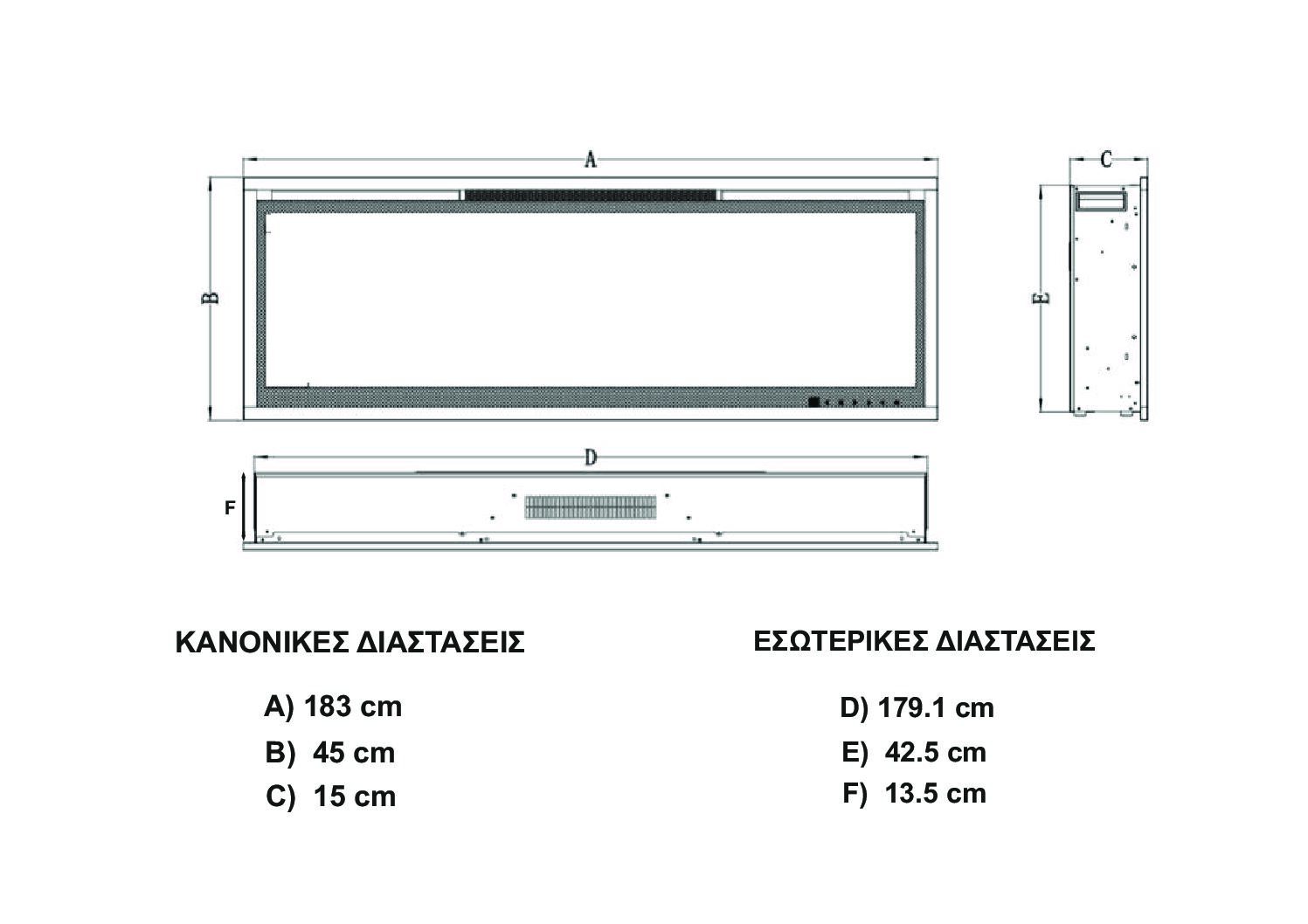ΕΠΙΤΟΙΧΙΟ ΚΑΙ ΕΝΘΕΤΟ ΗΛΕΚΤΡΙΚΟ ΤΖΑΚΙ L.E.D LUXURIUS-S700 Model: LUXURIUS-S700 1600W ΤΕΧΝΙΚΑ ΧΑΡΑΚΤΗΡΙΣΤΙΚΑ Εφέ φλόγας με χρήση ξύλου Εφέ φλόγας με χρήση κρυστάλλων Εφέ φλόγας με χρήση ξύλου και κρυστάλλων Πρόσοψη από ίσιο γυαλί ασφαλείας Slim line υψηλή αισθητική με μικρή απόσταση από τον τοίχο Flat Line με μεγάλη οθόνη ( Ultra screen ) Τηλεχειριστήριο λειτουργιών Επιπλέον χειροκίνητη λειτουργία από την συσκευή ( Oθόνη αφής – touch screen ) Κρυμμένα κουμπιά (control panel) στην συσκευή για υψηλή αισθητική Αυτόματη απόκρυψη ψηφιακών ενδείξεων οθόνης L.E.D (5 δευτερόλεπτα) Hitense Master 3D εφέ φλόγας ( Premium ) Hitense Master 3D ειδικός κατοπτρισμός ρεαλιστικής απεικόνισης Ρεαλιστική κίνηση φλόγας ανάμεσα στα ξύλα Ρυθμιζόμενη ένταση φλόγας 5 επίπεδα (dimmer) Τεχνολογία εφέ με L.E.D 6) Επιλογές χρώματος φλόγας 1) Επιλογή Κλασσικής ρεαλιστικής φλόγας (Πορτοκαλί) 2) Επιλογή ρεαλιστικής φλόγας Μπλε (Frozen Blue) 3) Επιλογή Mix της Κλασσικής φλόγας μαζί με Μπλε (Frozen Blue) 4) Επιλογή κίτρινης φλόγας 5) Επιλογή μιξ κίτρινης φλόγας με πορτοκαλί 6) Επιλογή μιξ όλων των χρωμάτων 10 Επιλογές χρώματος φωτιζόμενης εστίας Ρυθμιζόμενη ένταση φωτεινότητας της εστίας 4 επίπεδα (dimmer) Αυτόματη εναλλαγή χρωμάτων εστίας ( κατ’επιλογήν ) Ενσωματωμένο σύστημα ήχου κρακινγκ (φλεγόμενου ξύλου) 2 Ρυθμίσεις έντασης ήχου 3 Επιλογές ταχύτητας της φλόγας Ρυθμιζόμενη θερμοκρασία από 15 – 30°C Χρονοδιακόπτης έως και 12 ώρες Ψηφιακές ενδείξεις θερμοκρασίας και χρονοδιακόπτη Δύο επιλογές θέρμανσης 800W / 1600W 1600W max Ξεχωριστή λειτουργία φλόγας-θέρμανσης Ασφάλεια θερμικής αποκοπής Σύστημα εισαγωγής αέρα από το εμπρός μέρος της συσκευής U.A.F.S ( Ultra Air Flow System ) Εξαγωγή ζεστού αέρα από το εμπρός μέρος της συσκευής Κρυμμένοι αεραγωγοί U.A.F.S για τέλεια αισθητική Τοποθέτηση επιτοίχια Τοποθέτηση εντοιχιζόμενη Σειριακός Αριθμός Μοναδικότητας Κατασκευάζεται με την τεχνολογία Erp (Eco Design Europe) για χαμηλή κατανάλωση ρεύματος Κατασκευάζεται βάσει των πιστοποιήσεων ποιότητας της Ευρωπαϊκής Ένωσης ( CE ) Ιδανικό για σπίτι , ξενοδοχείο, καφετέριες , εστιατόρια Διαστάσεις 183cm x 15cm x 45cm ( M x Π x Υ ) Βάρος 15kg Πολλές επιλογές τοποθέτησης Επιτοίχια τοποθέτηση Ένθετη τοποθέτηση Επιτοίχια και Ένθετη Εγγύηση ποιότητας Ηitense 2 χρόνια εγγύηση Περιλαμβάνεται στην συσκευασία ασύρματο χειριστήριο (κοντρόλ) Περιλαμβάνεται στην συσκευασία 1 πακέτο με ξύλα Περιλαμβάνεται στην συσκευασία 1 πακέτο με ειδικούς διάφανους κρυστάλλους ( Μικρούς ) Περιλαμβάνεται στην συσκευασία 1 πακέτο με ειδικούς διάφανους κρυστάλλους ( Μεγάλους ) Περιλαμβάνεται στην συσκευασία όλο το πακέτο στήριξης τοίχου (βάση , βίδες , ούπα ) Περιλαμβάνεται στην συσκευασία βιβλιαράκι με οδηγίες χρήσης και τοποθέτησης Περιλαμβάνεται στην συσκευασία ασύρματο χειριστήριο (κοντρόλ) Περιλαμβάνεται στην συσκευασία όλο το πακέτο στήριξης (βάση , βίδες , ούπα ) Περιλαμβάνεται στην συσκευασία βιβλιαράκι με οδηγίες χρήσης και τοποθέτησης www.hitense.gr