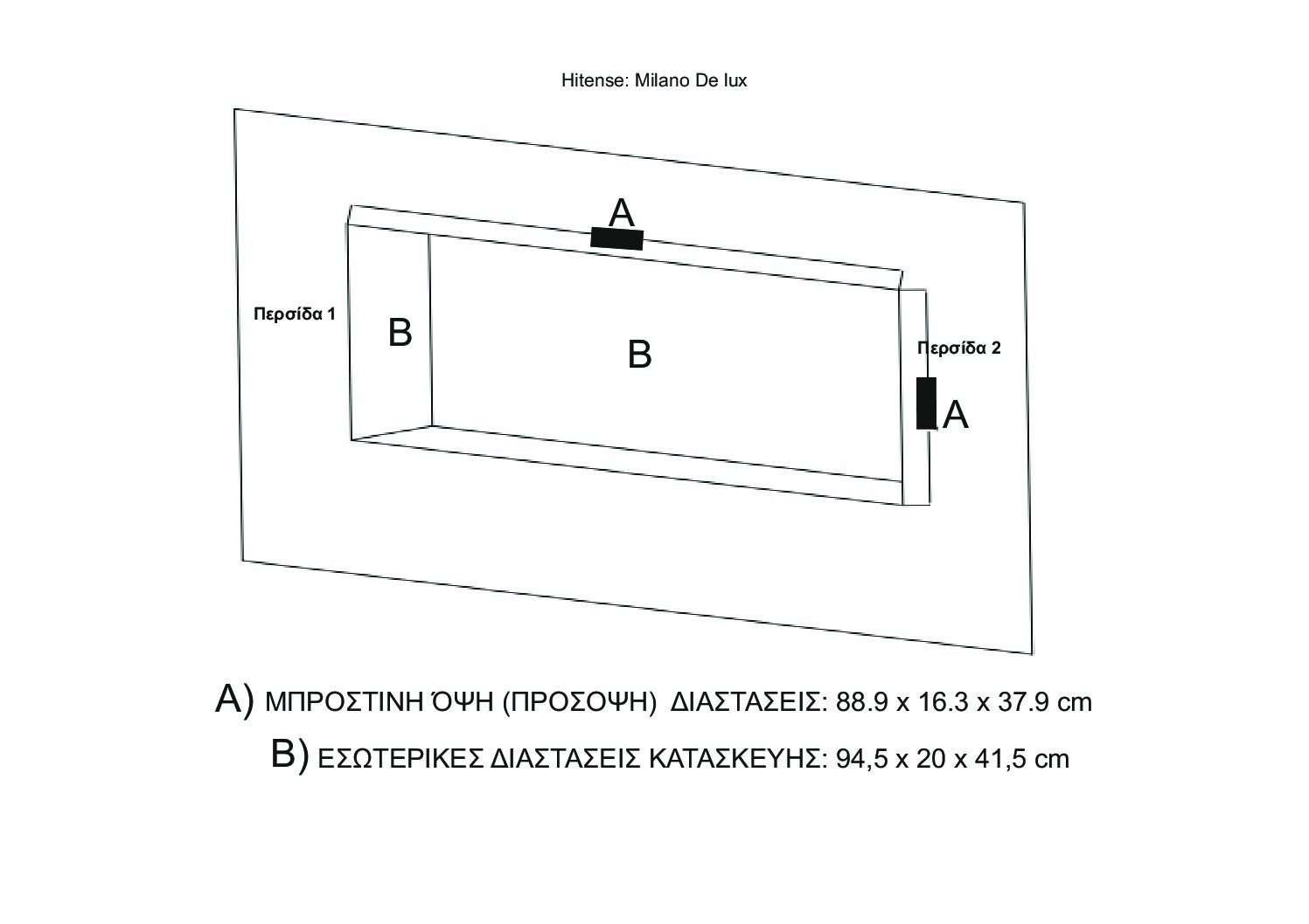 ΕΝΘΕΤΟ ΗΛΕΚΤΡΙΚΟ ΤΖΑΚΙ Model: Milano De Lux 1600W ΤΕΧΝΙΚΑ ΧΑΡΑΚΤΗΡΙΣΤΙΚΑ Εφέ φλόγας με χρήση ξύλου Πρόσοψη από γυαλί ασφαλείας Τηλεχειριστήριο λειτουργιών Επιπλέον χειροκίνητη λειτουργία από την συσκευή Κρυμμένα κουμπιά (control panel) στην συσκευή για υψηλή αισθητική Αυτόματη απόκρυψη ψηφιακών ενδείξεων οθόνης L.E.D (5 δευτερόλεπτα) Hitense Master 3D εφέ φλόγας (Premium) Hitense Master 3D ειδικός κατοπτρισμός ρεαλιστικής απεικόνισης Ρεαλιστική κίνηση φλόγας ανάμεσα στα ξύλα Ρυθμιζόμενη ένταση φλόγας 5-6 επίπεδα (dimmer) Τεχνολογία εφέ με L.E.D Ρυθμιζόμενη θερμοκρασία απο 15 – 30°C Χρονοδιακόπτης εώς και 12 ώρες Ψηφιακές ενδείξεις θερμοκρασίας και χρονοδιακόπτη 1600W max Ξεχωριστή λειτουργία φλόγας-θέρμανσης Ασφάλεια θερμικής αποκοπής Extra Slim Line 3 Επιλογές χρώματος φλόγας 1) Επιλογή Κλασσικής ρεαλιστικής φλόγας (Πορτοκαλί) 2) Επιλογή ρεαλιστικής φλόγας Μπλε (Frozen Blue) 3) Επιλογή Mix της Κλασσικής φλόγας μαζί με Μπλε (Frozen Blue) Μεγάλη οθόνη (Ultra Screen) Κατασκευάζεται με την τεχνολογία Erp (Eco Design Europe) για χαμηλή κατανάλωση ρεύματος Κατασκευάζεται βάσει των πιστοποιήσεων ποιότητας της Ευρωπαϊκής Ένωσης ( CE, RoHS ) Ιδανικό για σπίτι , ξενοδοχείο, καφετέριες , εστιατόρια Διαστάσεις: 88.5cm x 16cm x 37.5cm ( M x Π x Υ ) Βάρος 12 kg Πολλές επιλογές τοποθέτησης Εγγύηση ποιότητας Ηitense 2 χρόνια εγγύηση Περιλαμβάνεται στην συσκευασία ασύρματο χειριστήριο (κοντρόλ) Περιλαμβάνεται στην συσκευασία βιβλιαράκι με οδηγίες χρήσης και τοποθέτησης www.hitense.gr