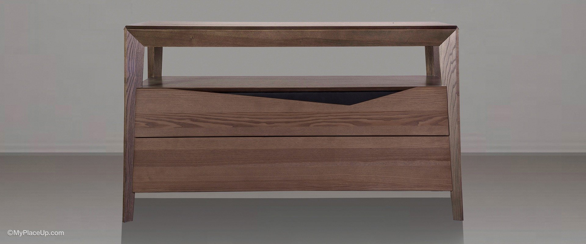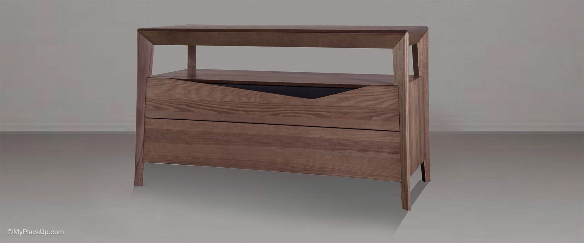 Η εσωτερική δομή της είναι από συμπαγή σκελετό μοριοσανίδας και mdf. Οι επιφάνειες ξύλου αποτελούνται από επενδεδυμένο mdf με φυσικό καπλαμά ελιάς. Τα πόδια είναι κατασκευασμένα από μασίφ ξύλο δεσποτάκι. Το πόμολο είναι επενδεδυμένο με ύφασμα, με το ίδιο ύφασμα με αυτό του κεφαλαρίου.