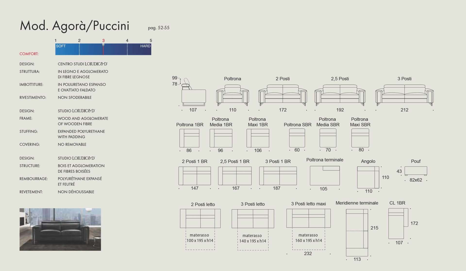 Καναπές Agora δέρμα Ιταλίας Made in Italy Διαστάσεις (cm): Γωνία chaise lounque: 294 x 172 - Γωνία 300 x 215 x 107 - Τριθέσιος: 212 x 107 - Διθέσιος: 172 x 107 Κατηγορία δέρματος: Cat.400 πάχος 1,5 - 1,6mm Τα μαξιλάρια καθίσματος κατασκευάζονται από αφρό πολυουρεθάνης μέτριας προς μαλακής σκληρότητας ενώ τα μαξιλάρια πλάτης είναι γεμισμένα με πολυεστερικές ίνες (conforel). Ο σκελετός του καναπέ είναι κατασκευασμένος από μασίφ ξυλεία (οξιά & λευκή ξυλεία) ενώ τη στήριξη των μαξιλαριών αναλαμβάνουν οι πυκνά τοποθετημένοι & πλεγμένοι ελαστικοί ιμάντες (φάσες). Διατίθεται σε διάφορες διαστάσεις και παραλλαγές, με δέρμα ή ύφασμα της επιλογής σας. Το ψηλό πόδι , αποτρέπει το λέρωμα της βάσης του καναπέ από παπούτσια ενώ η απόσταση από το πάτωμα μας δίνει τη δυνατότητα να καθαρίζουμε εύκολα & γρήγορα κάτω από αυτόν. Έχτρα αξεσουάρ: Ηλεκτρικούς μηχανισμούς relax ( πλάτη - πόδια ) στην θέση των μπράτσων. Για δυνατότητες αλλαγών επικοινωνήστε μαζί μας.