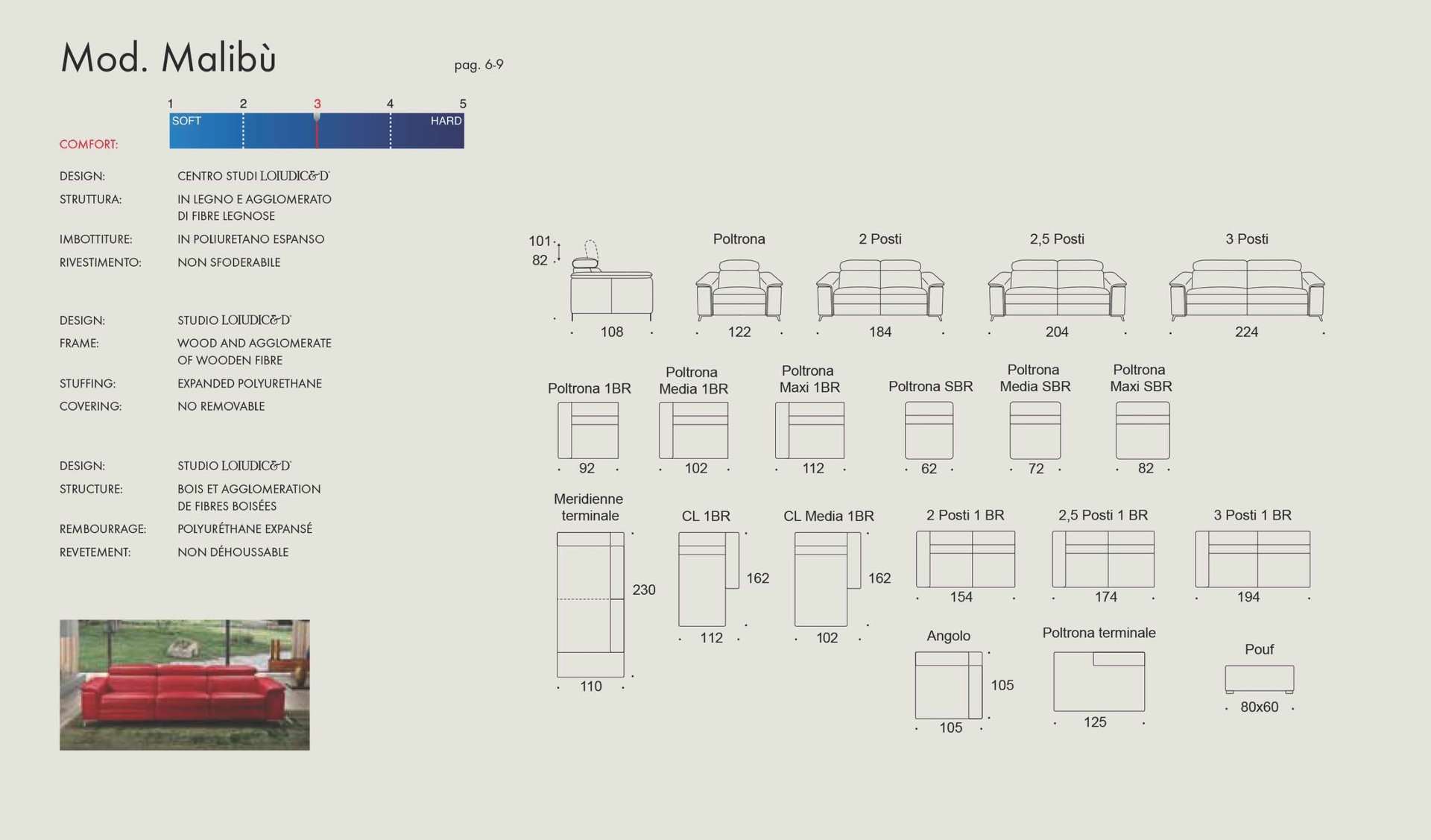 Καναπές Portofino δέρμα Ιταλίας Made in Italy Διαστάσεις (cm): Γωνία 304 x 230 x 108 - Τριθέσιος: 224 x 108 - Διθέσιος: 184 x 108 Κατηγορία δέρματος: Cat.400 πάχος 1,5 - 1,6mm Τα μαξιλάρια καθίσματος κατασκευάζονται από αφρό πολυουρεθάνης και ανεξάρτητα ελατήρια μέτριας προς μαλακής σκληρότητας ενώ τα μαξιλάρια πλάτης είναι γεμισμένα με πολυεστερικές ίνες (conforel). Ο σκελετός του καναπέ είναι κατασκευασμένος από μασίφ ξυλεία (οξιά & λευκή ξυλεία) ενώ τη στήριξη των μαξιλαριών αναλαμβάνουν οι πυκνά τοποθετημένοι & πλεγμένοι ελαστικοί ιμάντες (φάσες). Το ψηλό πόδι , αποτρέπει το λέρωμα της βάσης του καναπέ από παπούτσια ενώ η απόσταση από το πάτωμα μας δίνει τη δυνατότητα να καθαρίζουμε εύκολα & γρήγορα κάτω από αυτόν. Διατίθεται σε διάφορες διαστάσεις, με δέρμα ή ύφασμα της επιλογής σας. Extra προαιρετικά ξύλινη μπάζα. Για δυνατότητες αλλαγών επικοινωνήστε μαζί μας.