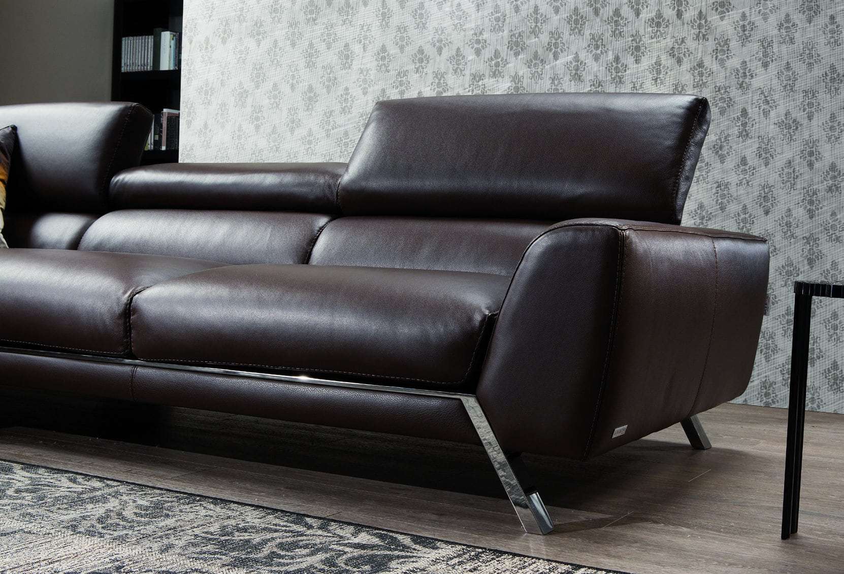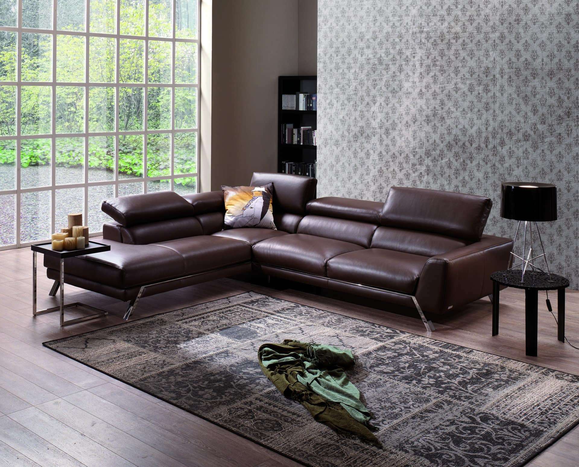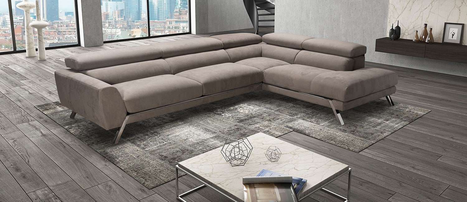Ιταλικός καναπές Mood. Διατίθεται σε γωνιακό, τριθέσιο, διθέσιο και πολυθρόνα. Κατασκευάζεται στην Ιταλία με γνήσιο δέρμα 100% με χρώματα και ποιότητες της επιλογής σας, ή μπορεί να κατασκευαστεί με ύφασμα σε ποιότητα και χρώμα που θα επιλέξετε. Μηχανισμός ανάκλισης στα προσκέφαλα του καναπέ για αναπαυτικό κάθισμα.