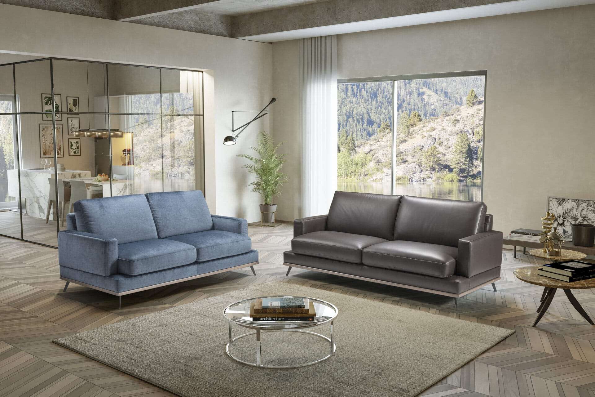 Ιταλικός καναπές Portofino. Διατίθεται σε γωνιακό, τριθέσιο, διθέσιο και πολυθρόνα. Κατασκευάζεται στην Ιταλία με γνήσιο δέρμα 100% με χρώματα και ποιότητες της επιλογής σας, ή μπορεί να κατασκευαστεί με ύφασμα σε ποιότητα και χρώμα που θα επιλέξετε. Προαιρετική είναι η ξύλινη μπάζα στον καναπέ.