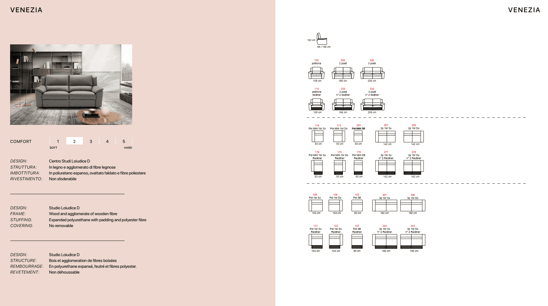 Ιταλικός καναπές Venezia. Διατίθεται σε γωνιακό, τριθέσιο, διθέσιο και πολυθρόνα. Κατασκευάζεται στην Ιταλία με γνήσιο δέρμα 100% με χρώματα και ποιότητες της επιλογής σας, ή μπορεί να κατασκευαστεί με ύφασμα σε ποιότητα και χρώμα που θα επιλέξετε. Δυνατότητα ηλεκτρικού μηχανισμού relax
