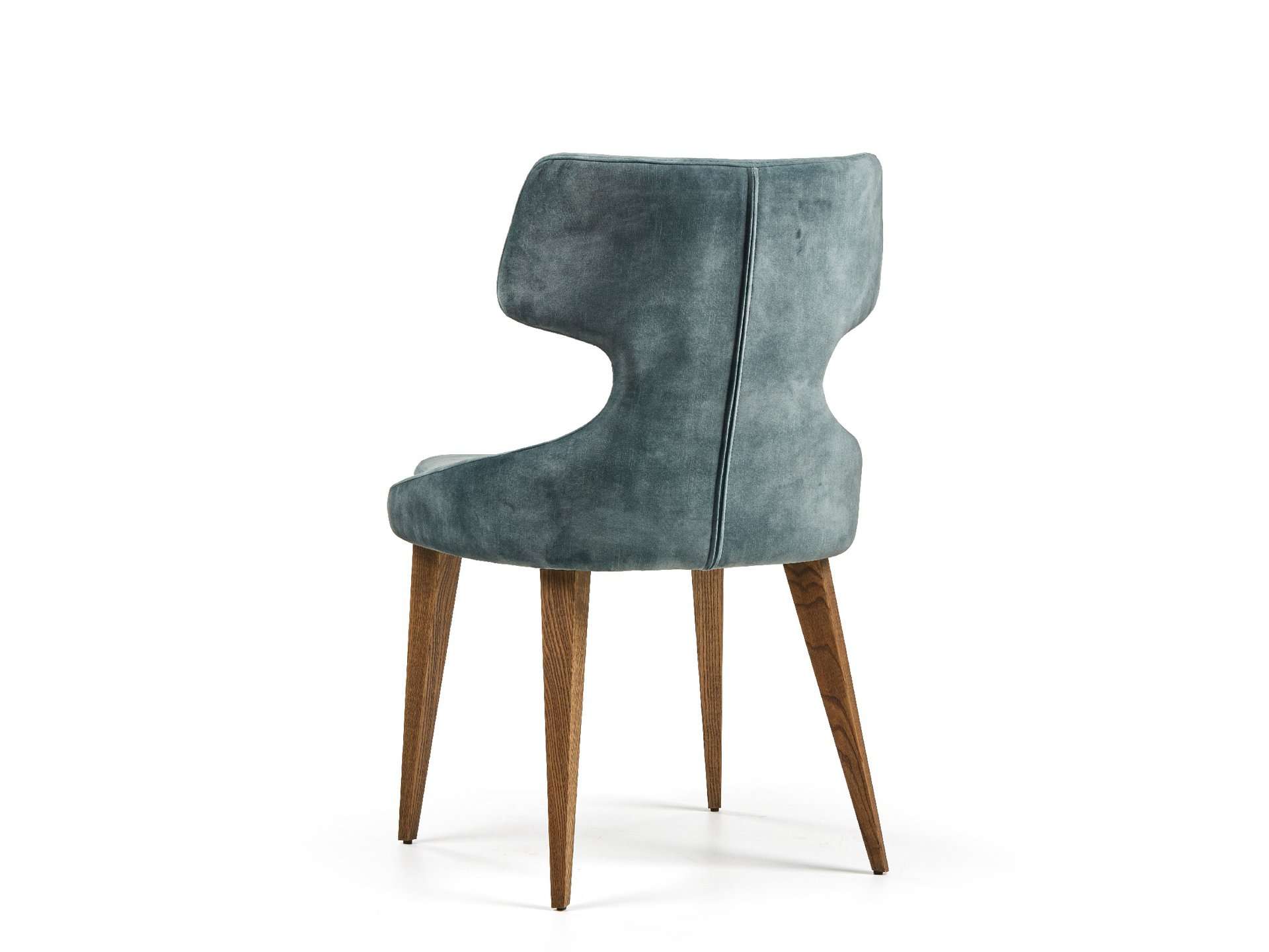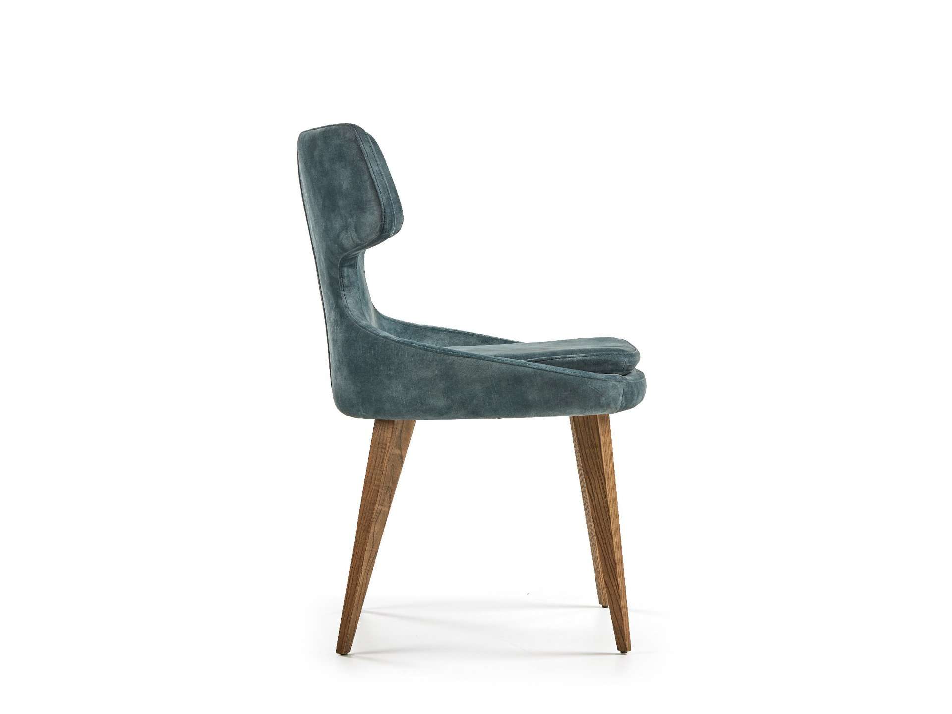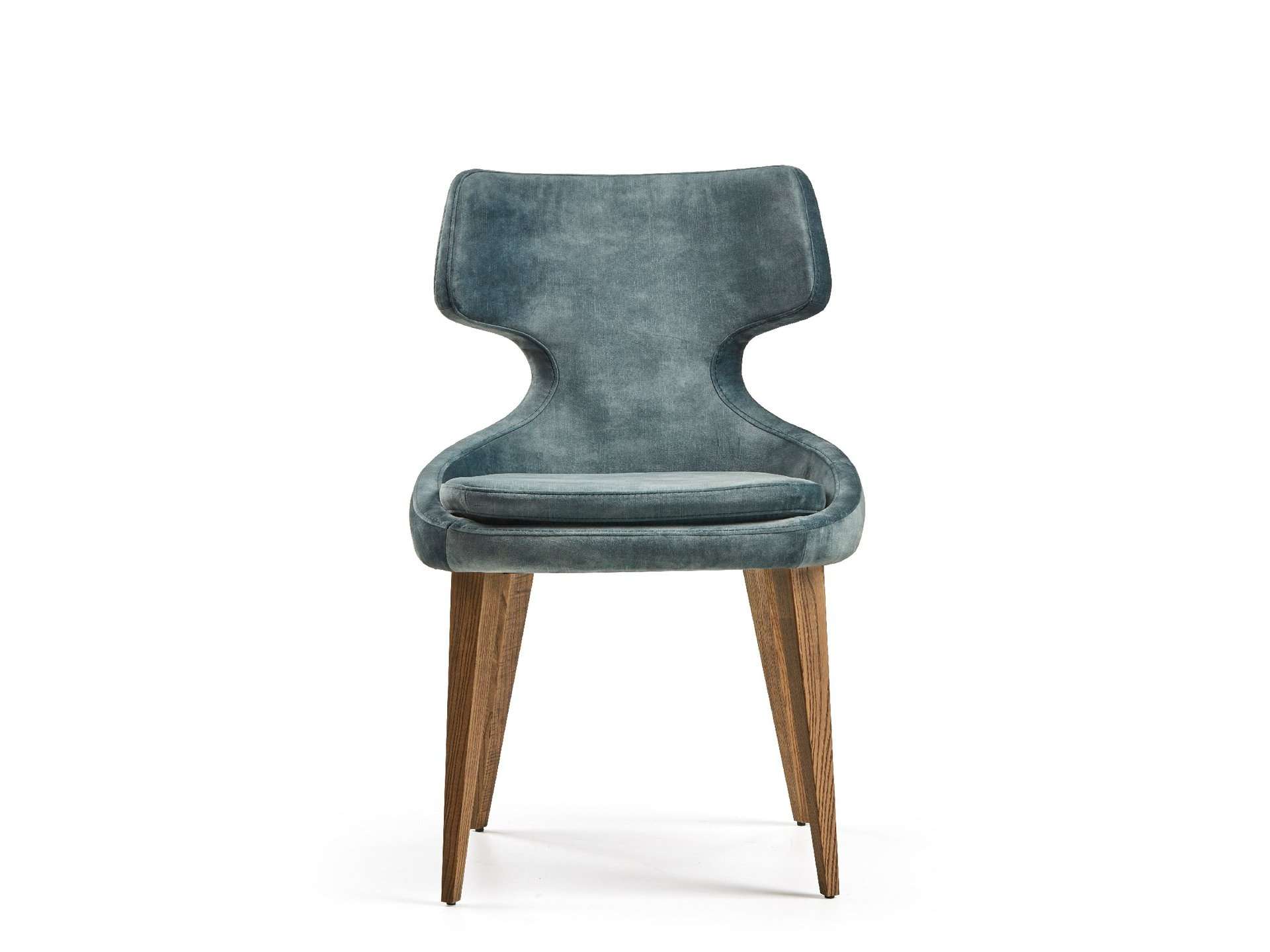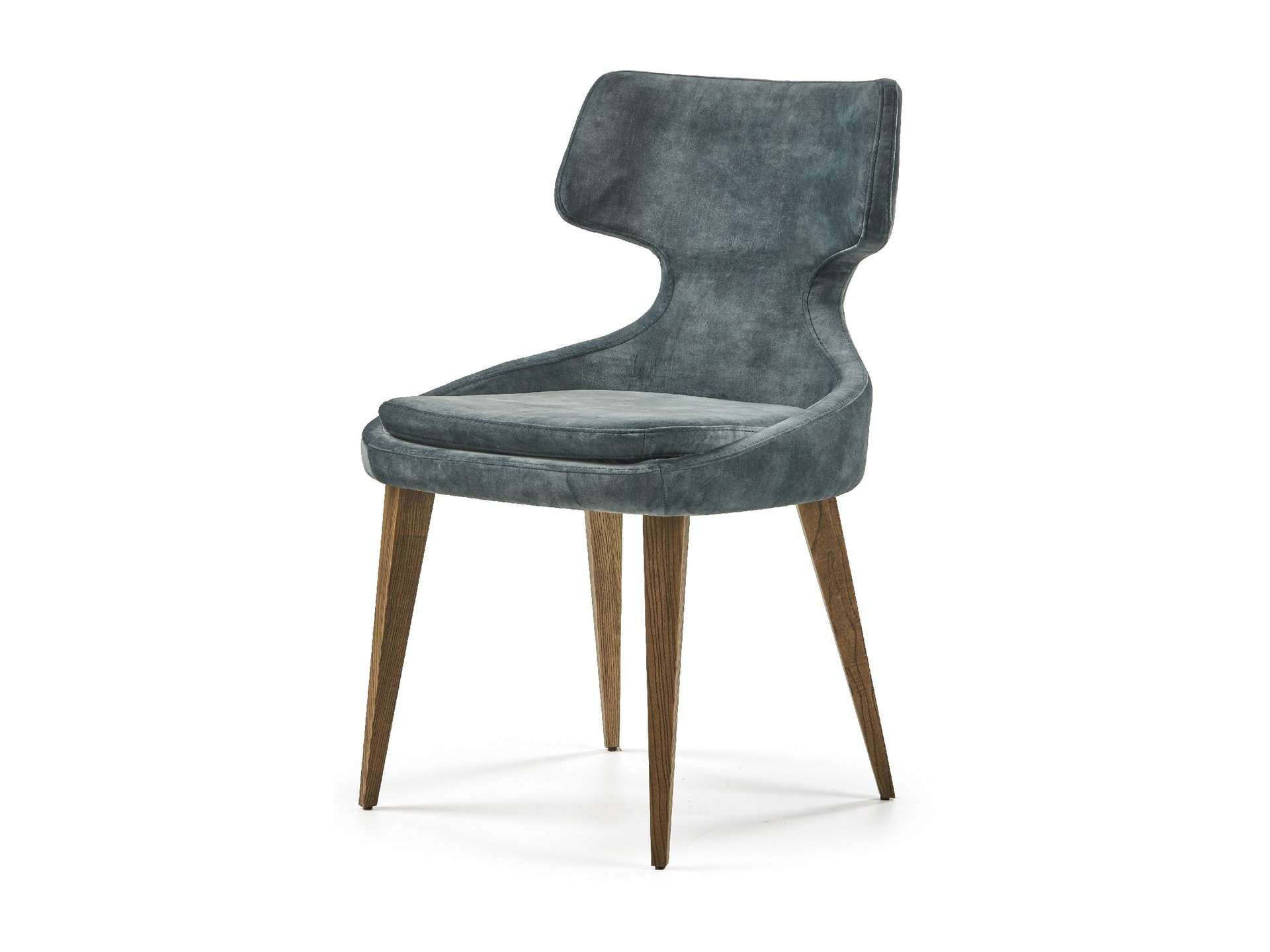 Μοντέρνου σχεδιασμού καρέκλα, ντυμένη με ύφασμα και ξύλινα πόδια. Δυνατότητα προσθήκης περιστρεφόμενου μηχανισμού - απαιτείται αλλαγή βάσης.