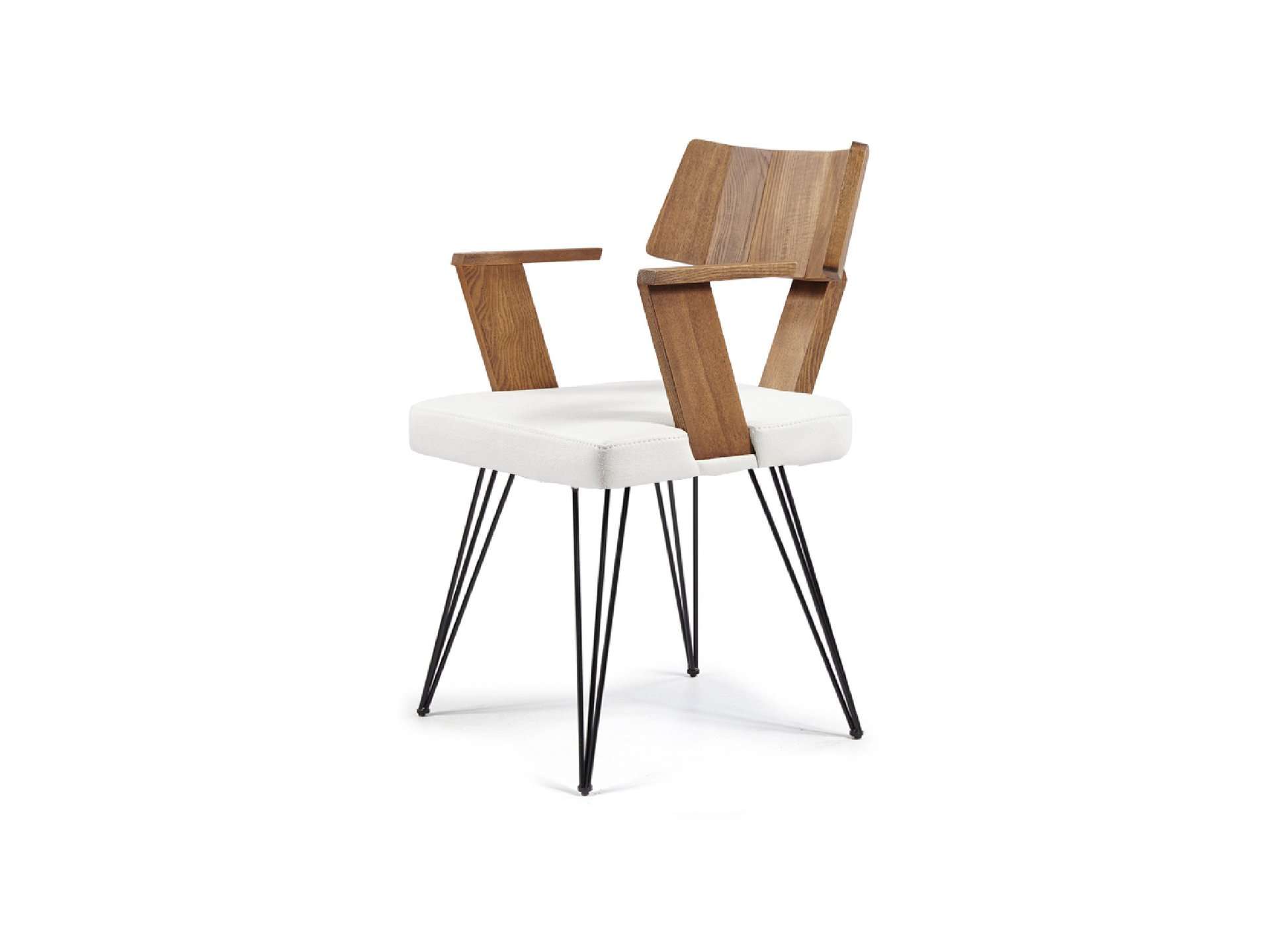 Μοντέρνου σχεδιασμού καρέκλα με μπράτσα, ντυμένη με ύφασμα και μεταλλικά πόδια. Δυνατότητα επιλογής υφασμάτινης ή ξύλινης πλάτης.