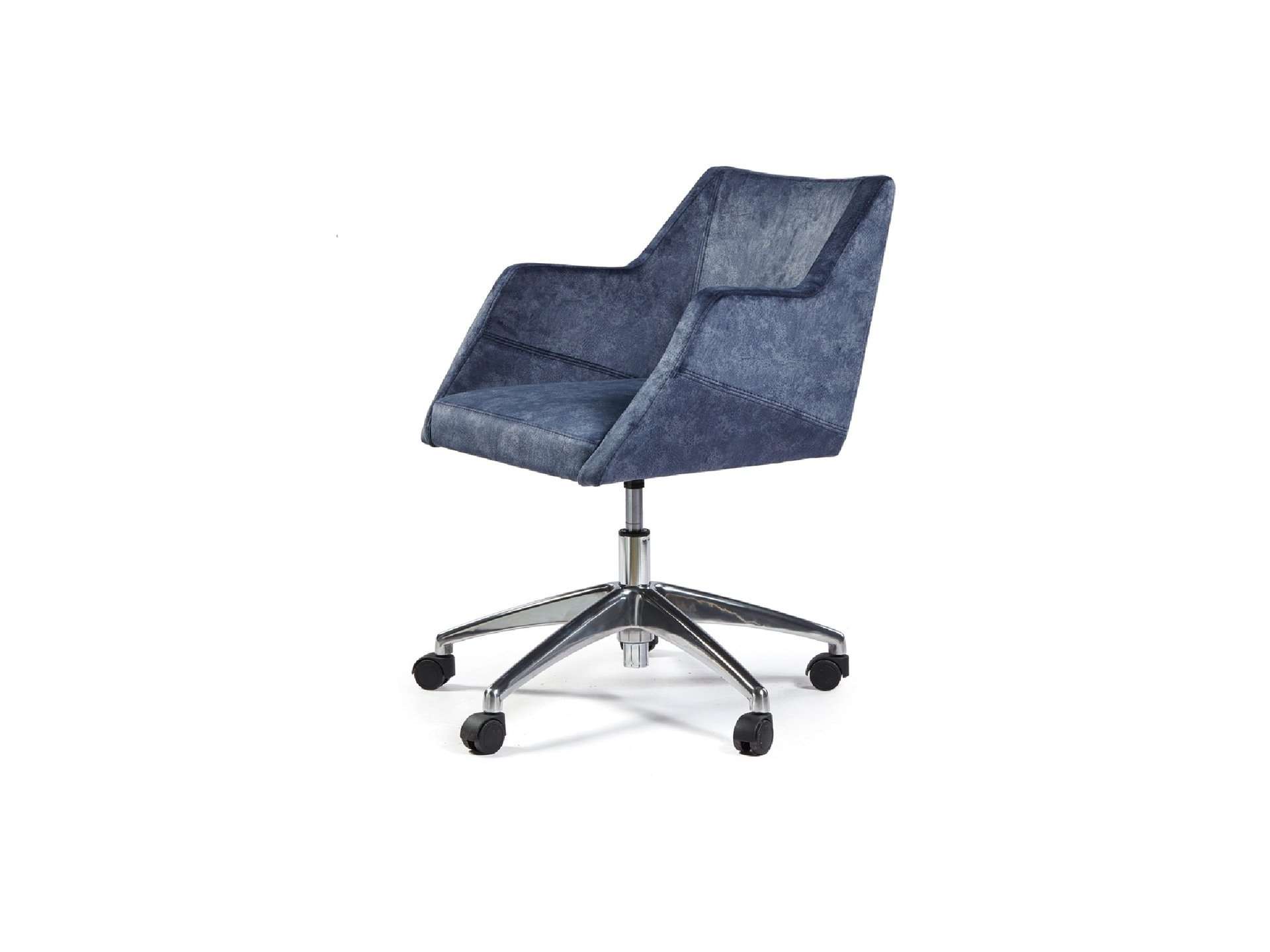 Μοντέρνου σχεδιασμού καρέκλα με μπράτσα, ντυμένη με ύφασμα και μεταλλική περιστρεφόμενη βάση