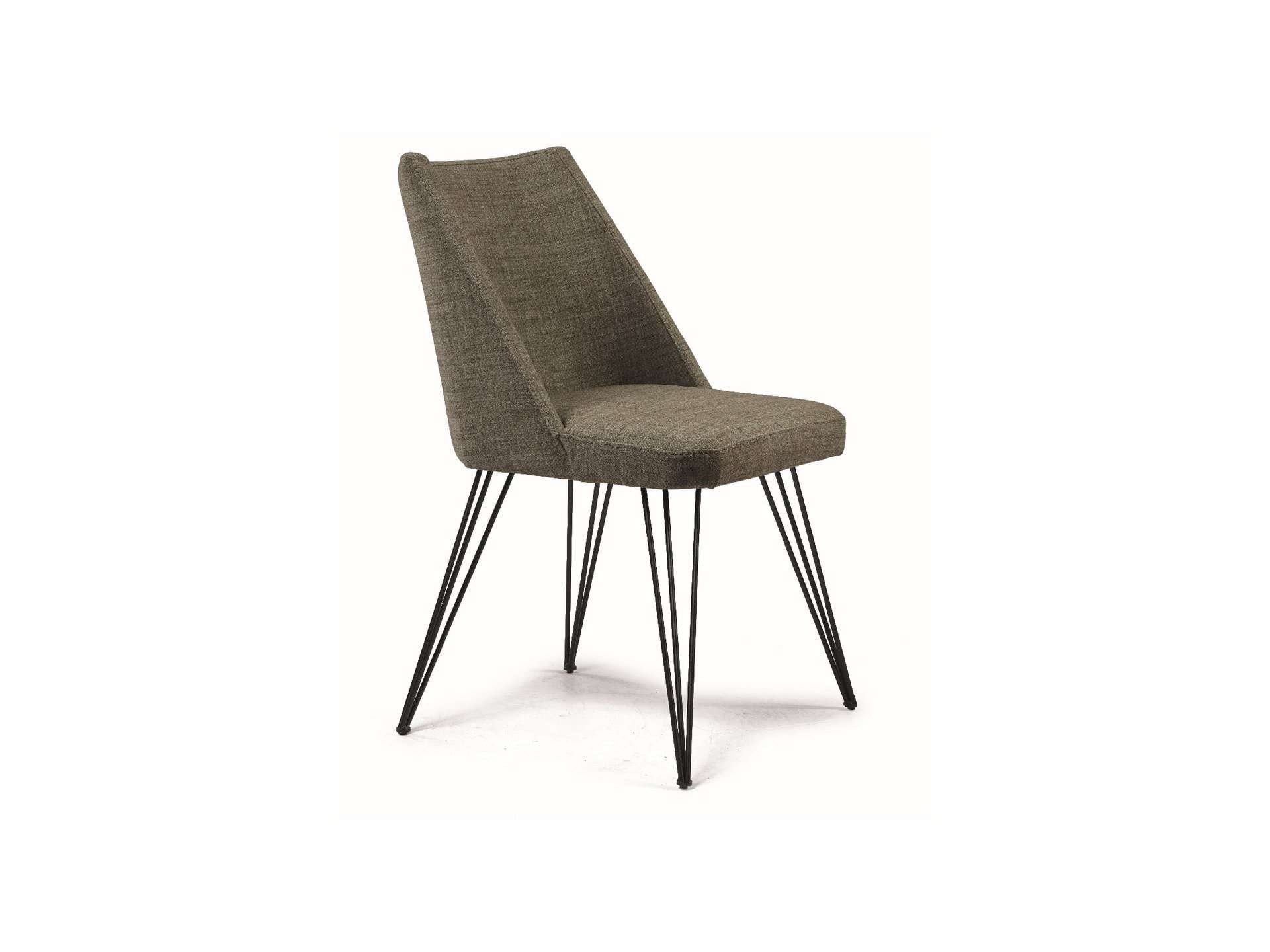 Μοντέρνου σχεδιασμού καρέκλα, ντυμένη με ύφασμα και μεταλλικά πόδια.