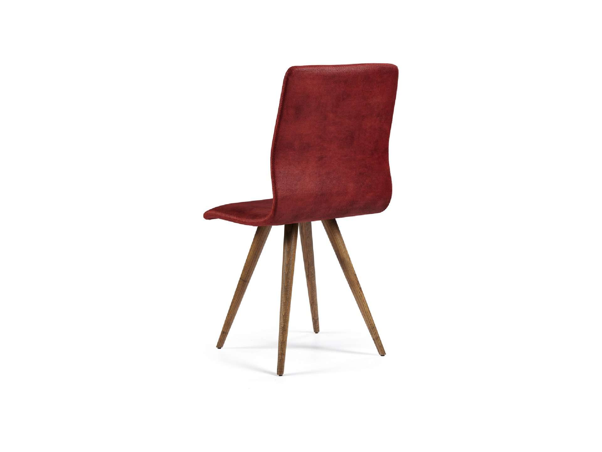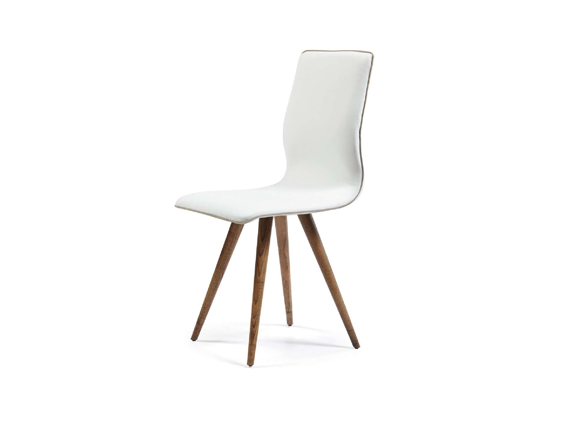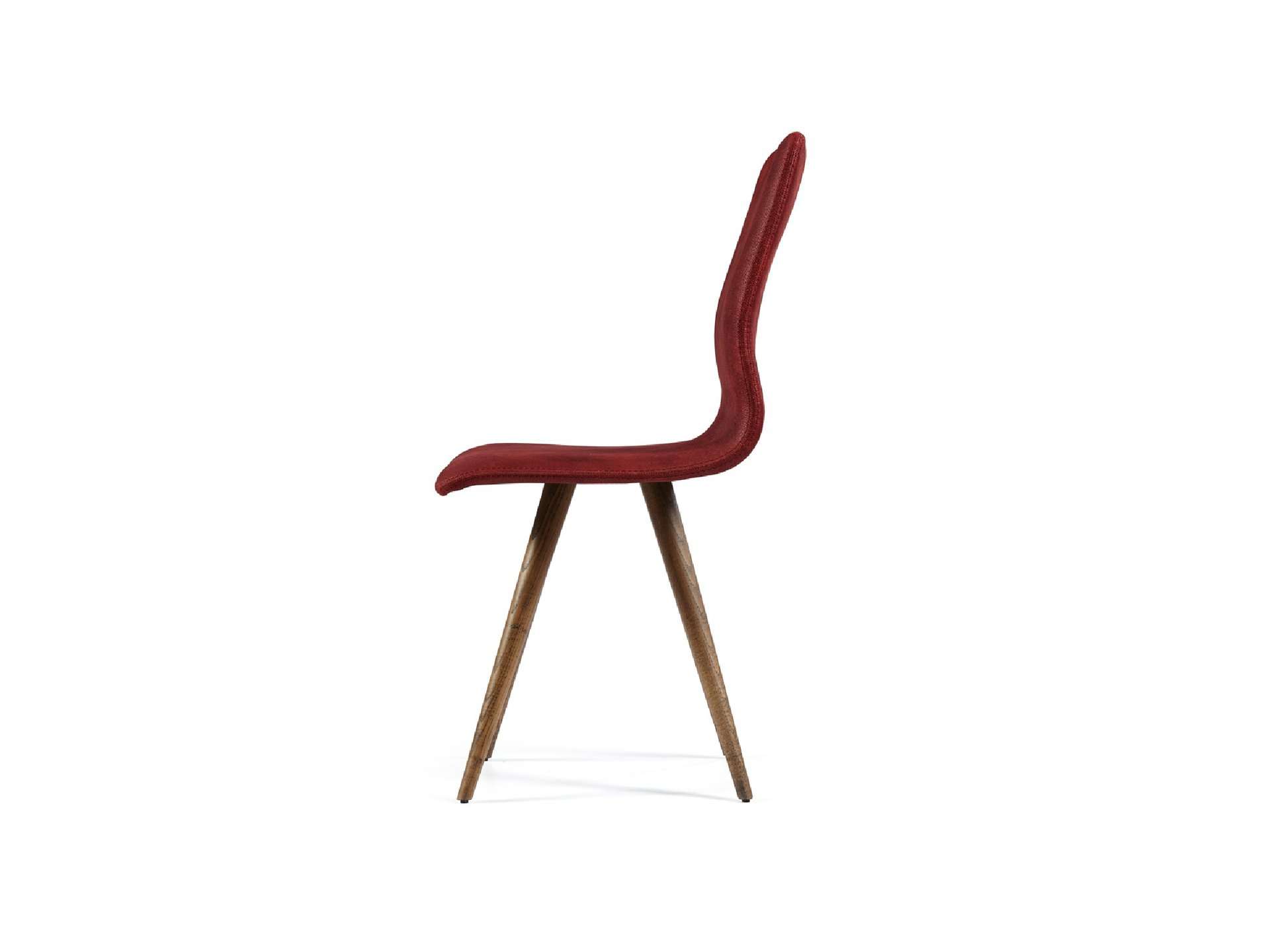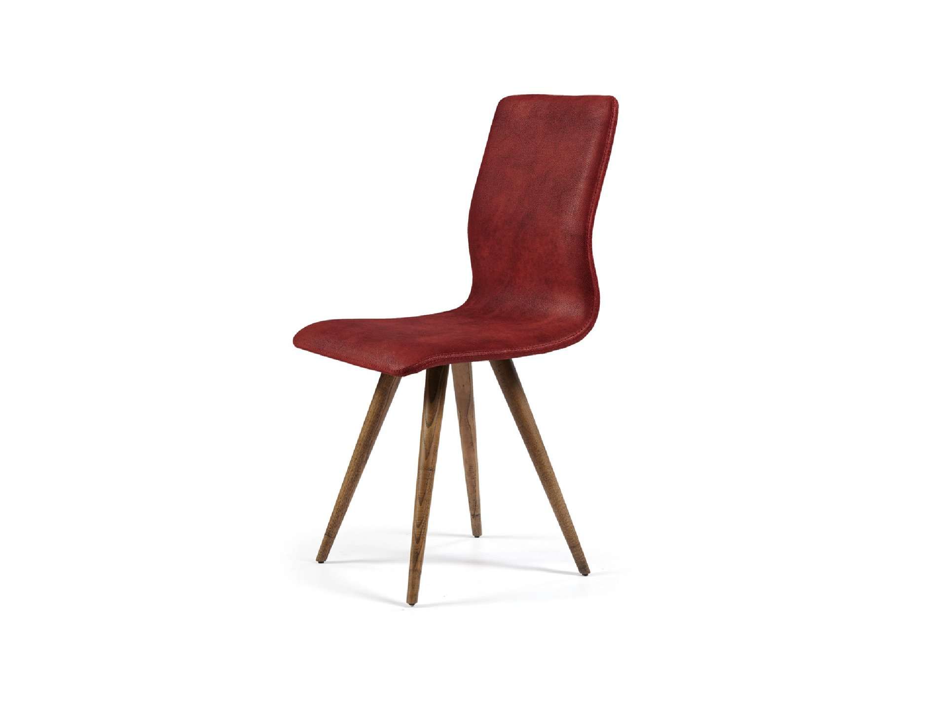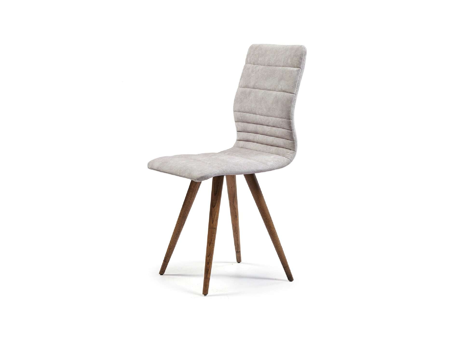 Μοντέρνου σχεδιασμού καρέκλα, ντυμένη με ύφασμα και ξύλινα πόδια.