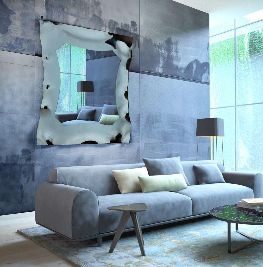 Καθρέφτης διακοσμητικός σε σχήμα τετραγώνου με ιδιαίτερες λεπτομέρειες στο περίγραμμα ψημένου γυαλιού σε μαύρο χρώμα, θα δώσει μια luxury πινελιά στον χώρο σας.