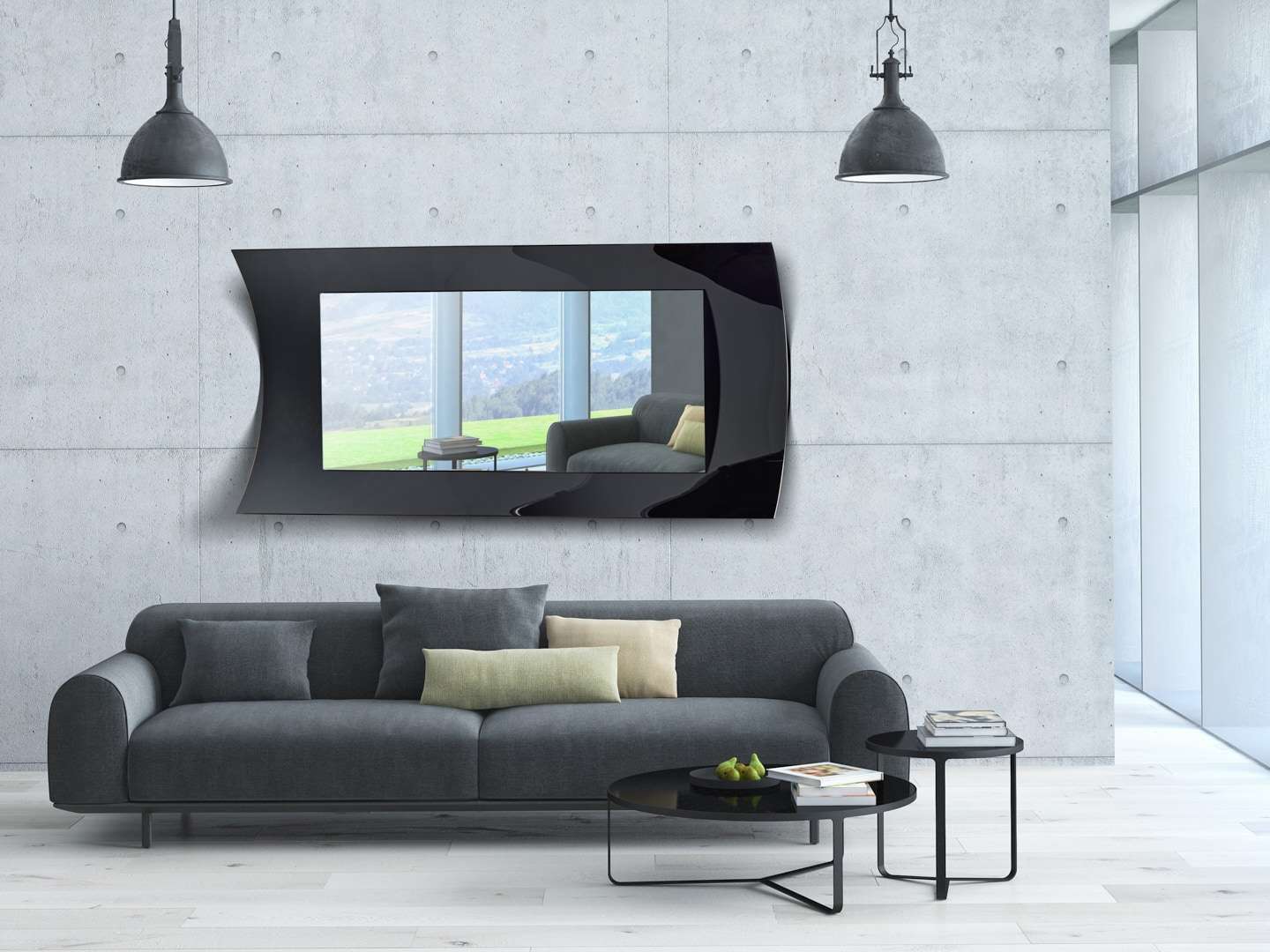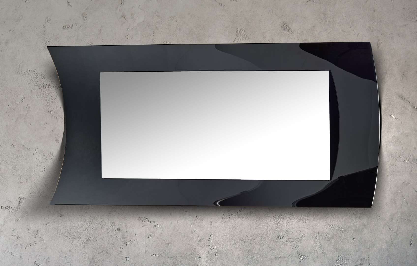 Καθρέφτης διακοσμητικός σε σχήμα παραλληλόγραμμο με ιδιαίτερες λεπτομέρειες στο περίγραμμα ψημένου γυαλιού σε μαύρο χρώμα, θα δώσει μια luxury πινελιά στον χώρο σας.