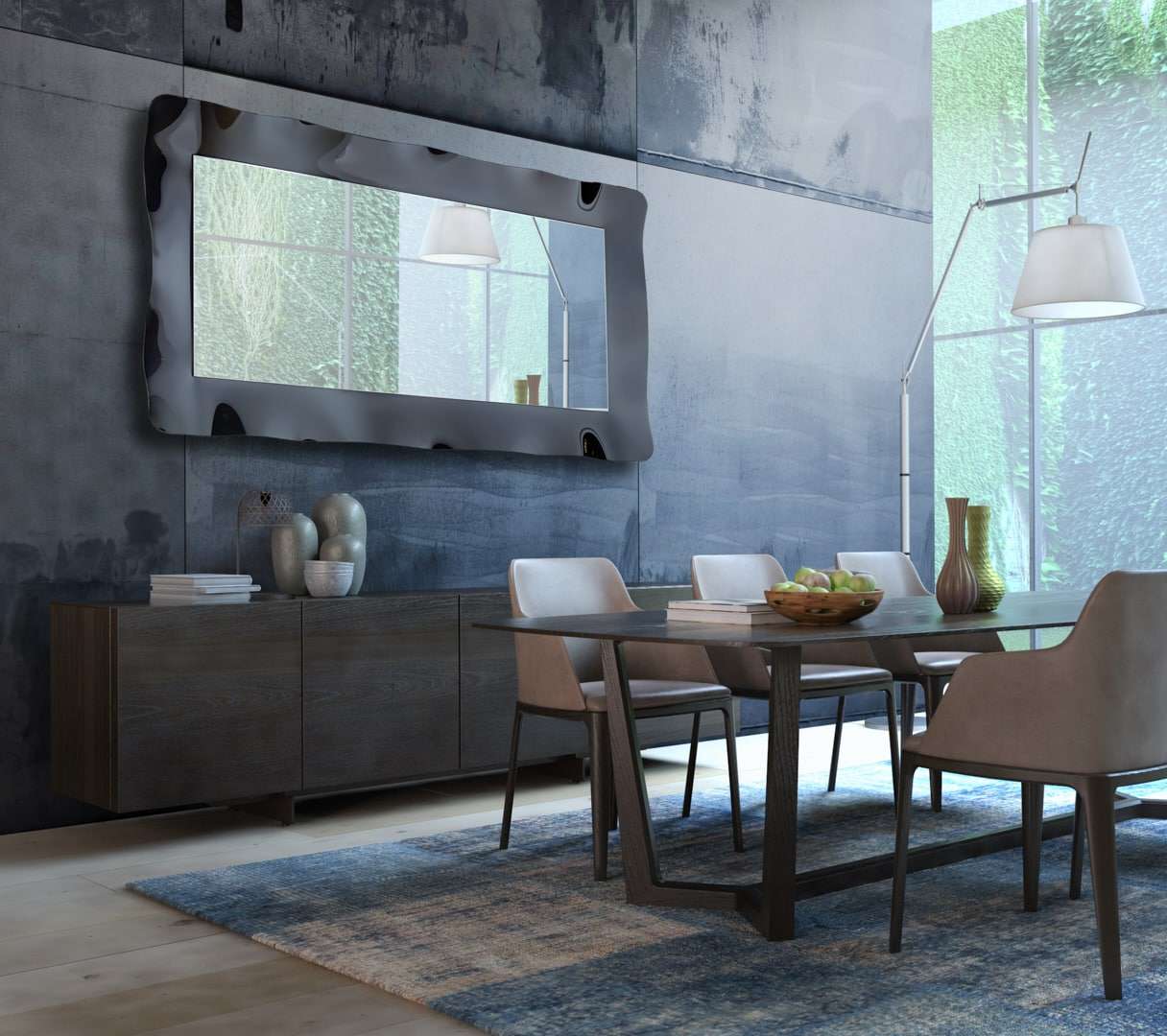 Καθρέφτης διακοσμητικός σε σχήμα παραλληλόγραμμο με ιδιαίτερες λεπτομέρειες στο περίγραμμα ψημένου γυαλιού σε μαύρο χρώμα, θα δώσει μια luxury πινελιά στον χώρο σας.