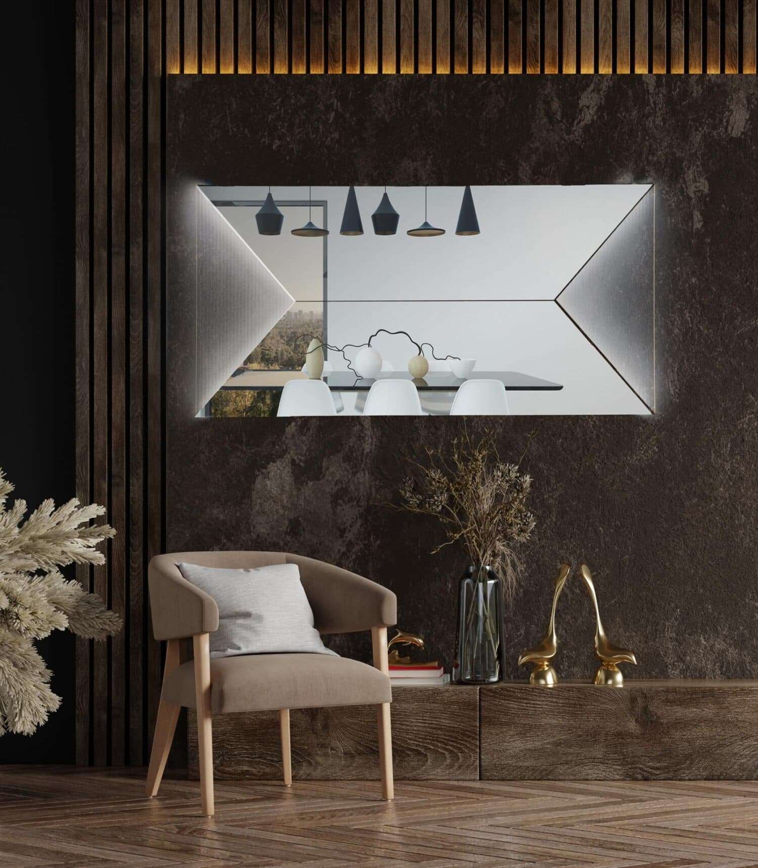Καθρέφτης διακοσμητικός σε σχήμα παραλληλόγραμμο με φωτισμό led, που θα δώσει μια luxury πινελιά στον χώρο σας.