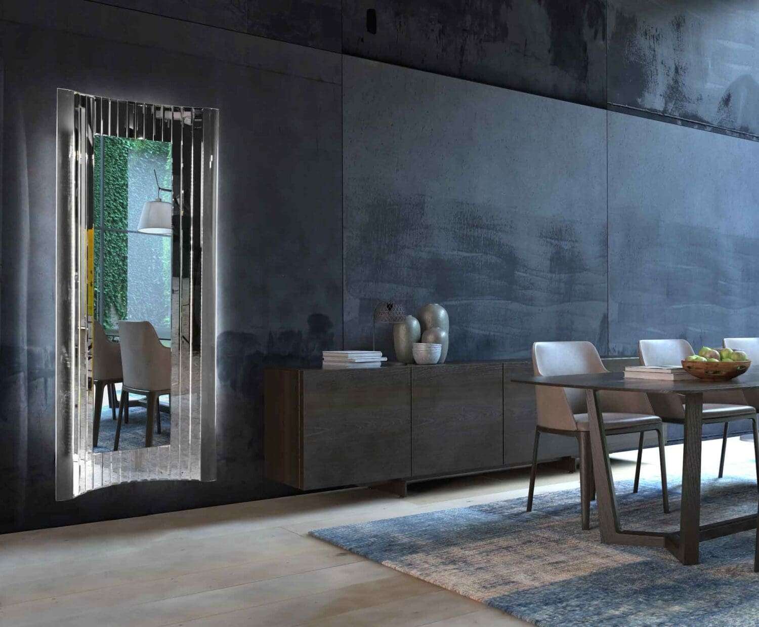 Καθρέφτης L150 με φωτισμό led Διάσταση: 190cm x 90cm Χρώμα καθρέφτη: φυσικό Ο διακοσμητικός καθρέπτης τοίχου διαθέτει φωτισμό led που λειτουργεί με ρεύμα. Είναι σε σχήμα παραλληλόγραμμο με extra white κρύσταλλα και αμμοβολή. Είναι ένα υπέροχο διακοσμητικό τοίχου, που θα συμπληρώσει τον χώρο του σαλονιού ή του επαγγελματικού σας χώρου. Δυνατότητα αλλαγής διάστασης