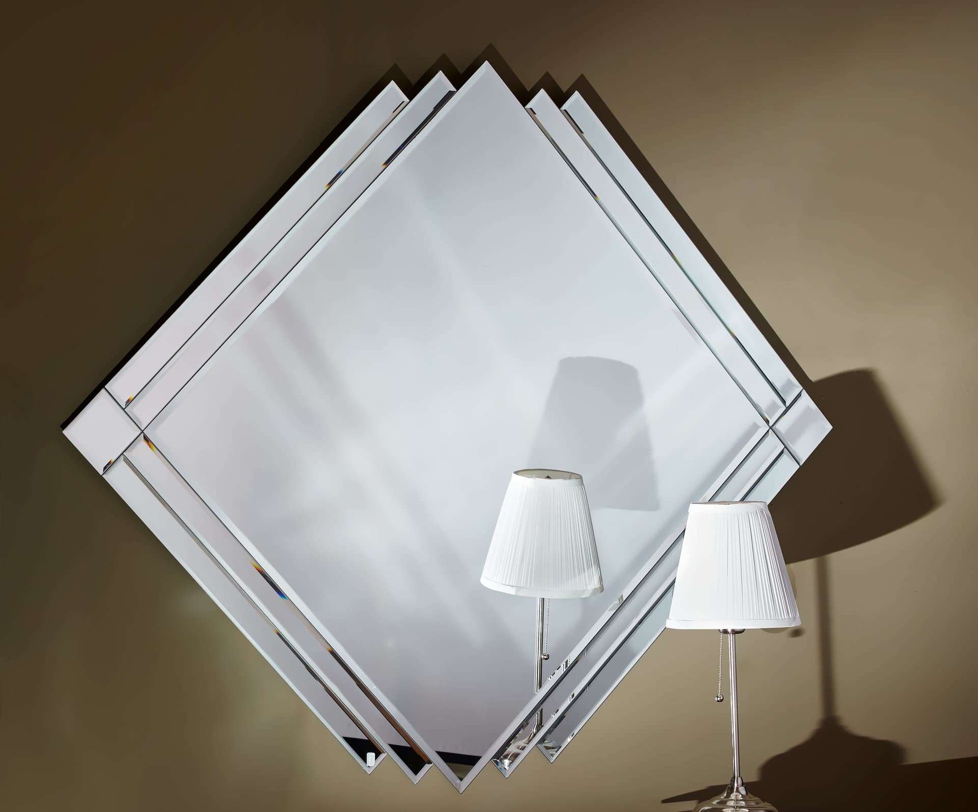 Καθρέφτης P90 Διάσταση: 100cm x 100cm Χρώμα καθρέφτη: φυσικό Ο διακοσμητικός καθρέπτης είναι σε σχήμα ρόμβου με φυσικό χρώμα κρύσταλλου. Είναι ένα υπέροχο διακοσμητικό τοίχου, που θα συμπληρώσει τον χώρο του σαλονιού ή τον επαγγελματικό σας χώρο. Δυνατότητα αλλαγής διάστασης