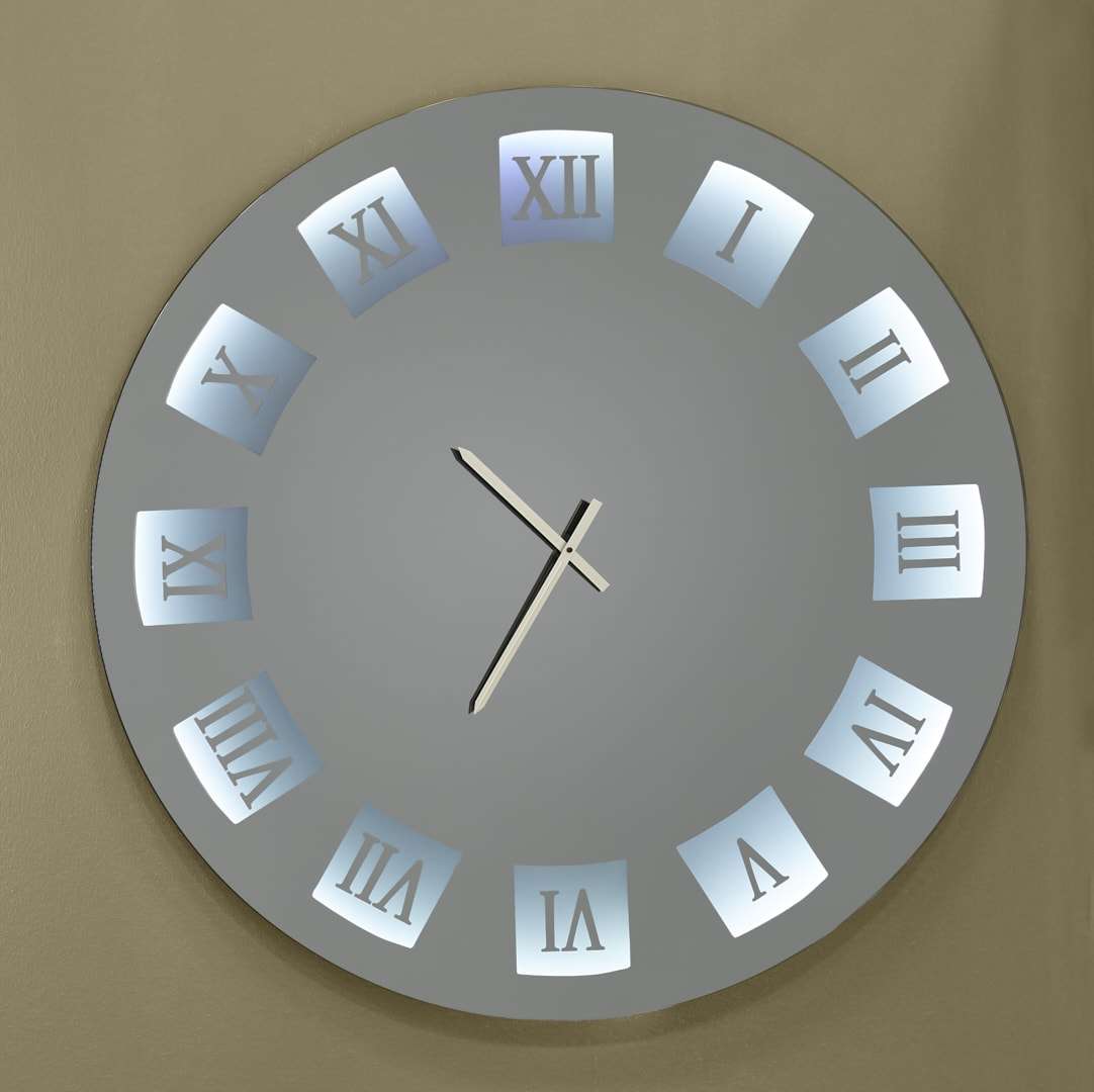 Καθρέφτης ρολόι με φωτισμό led, με αμμοβολή στα λατινικά νούμερα και χρώμα καθρέφτη φιμέ.