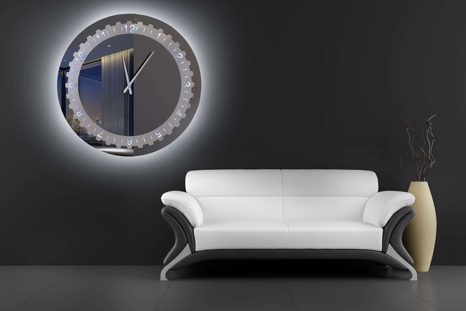 Καθρέφτης ρολόι με φωτισμό led με διακοσμητικό ανοξείδωτο στεφάνι και χαραγμένα τα νούμερα με lazer