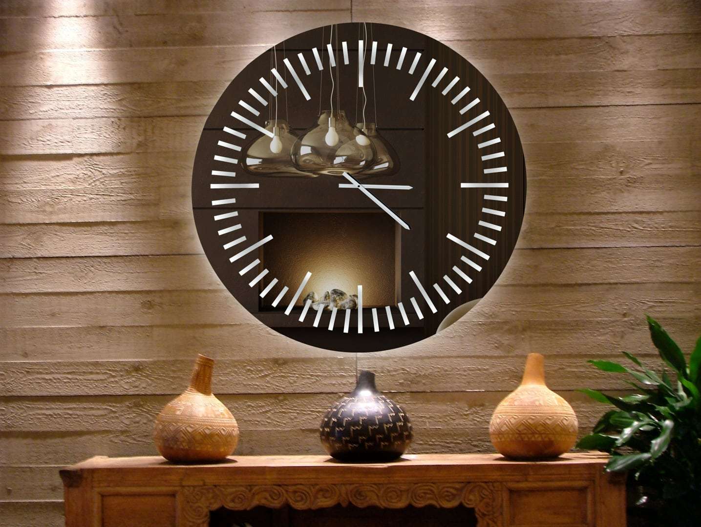 Καθρέφτης ρολόι N40 με φωτισμό led Διάσταση: Φ104cm Χρώμα καθρέφτη: Φιμέ Καθρέπτης τοίχου Ν40 εκλεπτυσμένης σχεδίασης, με κρυφό φωτισμό led και μηχανισμό ρολογιού. Ένας καθρέπτης που θα μεταμορφώσει τον χώρο της τραπεζαρίας ή του καθιστικού σας. Δυνατότητα αλλαγής διάστασης