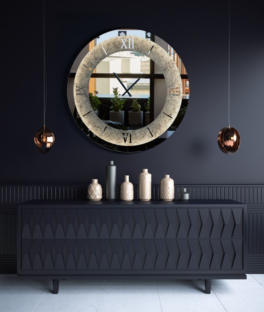 Καθρέφτης ρολόι Q120 με φωτισμό led Ελληνικής κατασκευής Διάσταση: Φ105m Χρώμα καθρέφτη: Φυσικό Διακοσμητικός καθρέφτης τοίχου με κρυφό φωτισμό led και μηχανισμό ρολογιού. Αμμοβολή στο περίγραμμα και λατινικά νούμερα. Ένας καθρέπτης που θα μεταμορφώσει τον χώρο της τραπεζαρίας ή του καθιστικού σας. Δυνατότητα αλλαγής διάστασης