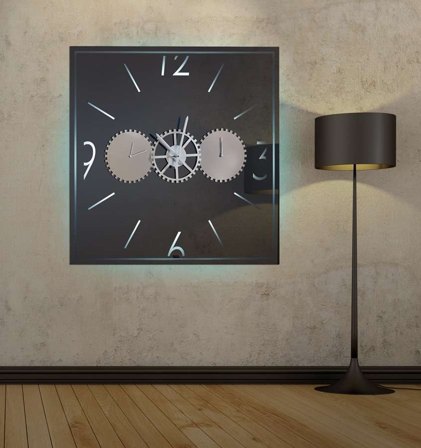Καθρέφτης ρολόι με φωτισμό led, με τρείς μηχανισμούς και ανοξείδωτα διακοσμητικά γρανάζια.