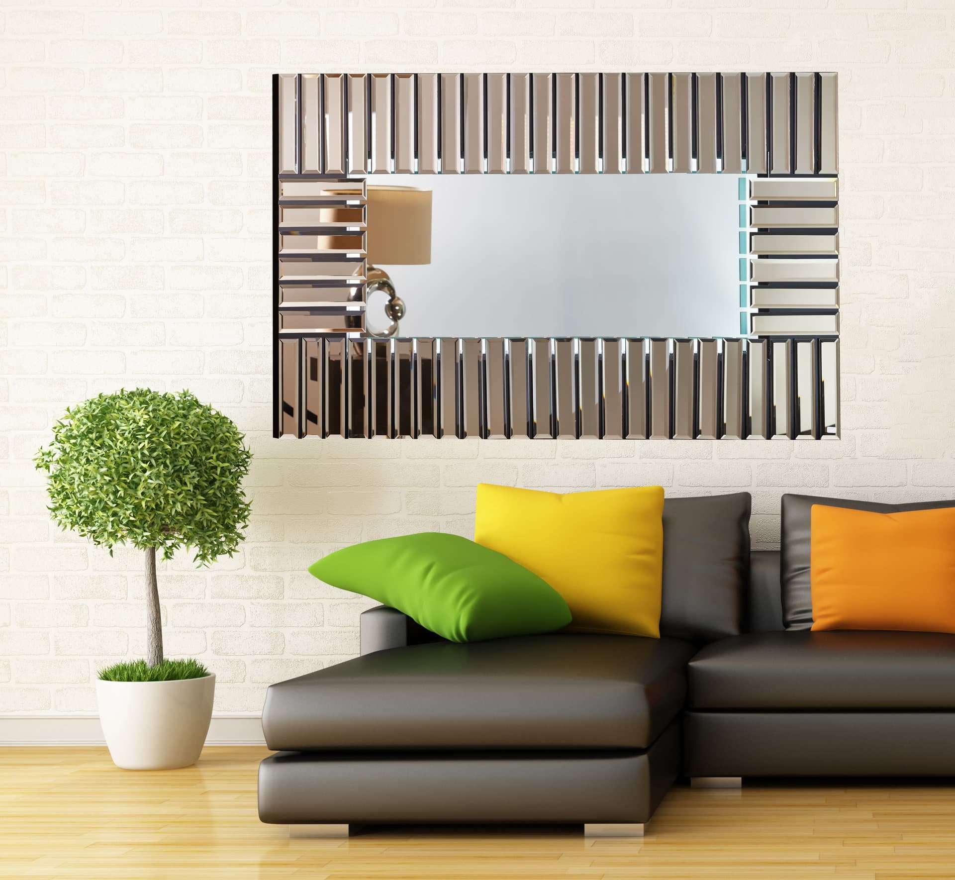 Καθρέφτης διακοσμητικός σε σχήμα παραλληλόγραμμο με ιδιαίτερες  λεπτομέρειες στο περίγραμμα, θα δώσει μια luxury πινελιά στον χώρο σας.
