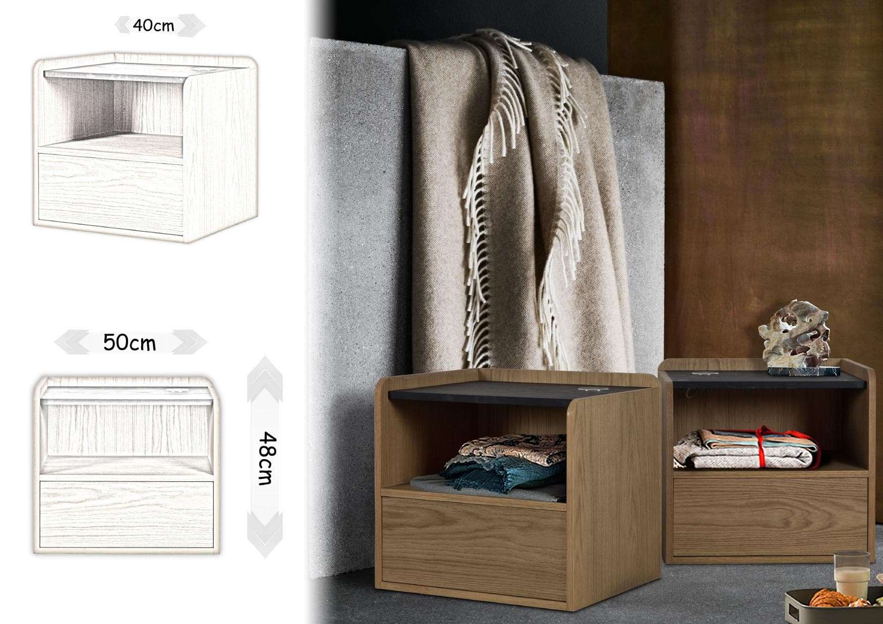 Ο σχεδιασμός και η χρηστικότητα του David θα δώσει στην κρεβατοκάμαρα σας μια διαφορετική πινελιά. Ακουμπήστε το κινητό σας στον ασύρματο φορτιστή ή συνδέστε το καλώδιο σας στην κρυφή θύρα USB. Διαθέτει ένα συρτάρι με μηχανισμό push και έναν ανοιχτό αποθηκευτικό χώρο. Ένα καλό βιβλίο, το τάμπλετ ή το κινητό σας, στο χέρι σας με μια κίνηση. Θα σας γίνει γρήγορα απαραίτητο. (Ο φορτιστής είναι extra επιλογή)