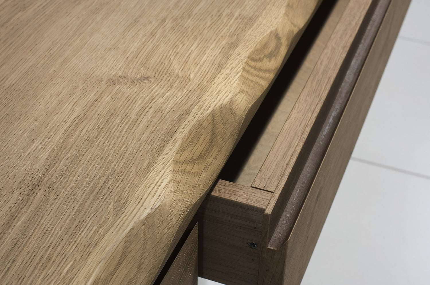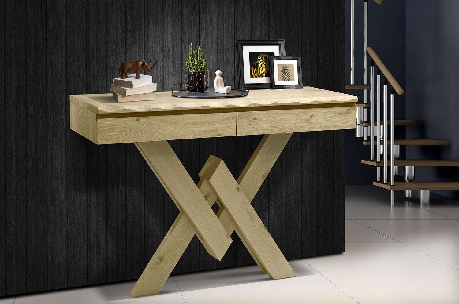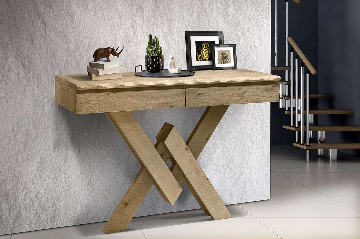 Εντυπωσιακό έπιπλο εισόδου με ιδιαίτερο πόδι από μασίφ δρυ και μασίφ συρτάρι. Την κατασκευάζουμε σε διαστάσεις, ξύλο και χρώματα προσαρμοσμένα στο χώρο σας.