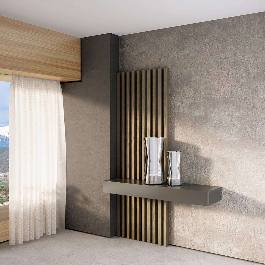 Μοντέρνα κονσόλα με λεπτές γραμμές και αρμονικό συνδυασμό ευκαλύπτου ή δρυς και λάκας. Την κονσόλα Sempre την κατασκευάζουμε σε διαστάσεις, ξύλο και χρώμα λάκας προσαρμοσμένα στο χώρο σας.