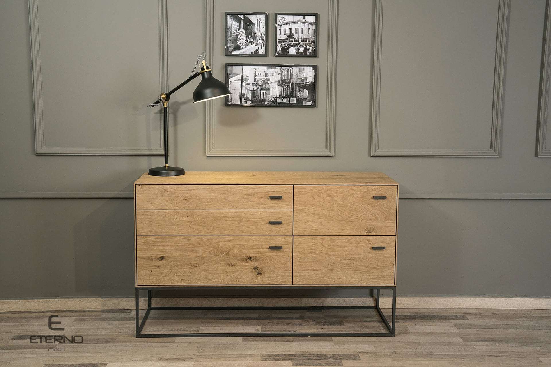 Ο καθαρός, λιτός της σχεδιασμός είναι το βασικό χαρακτηριστικό της κονσόλας steel με τα τέσσερα συρτάρια της. Κατασκευασμένη από ξύλο ρουστίκ με μεταλλικές λεπτομέρειες στην βάση της.