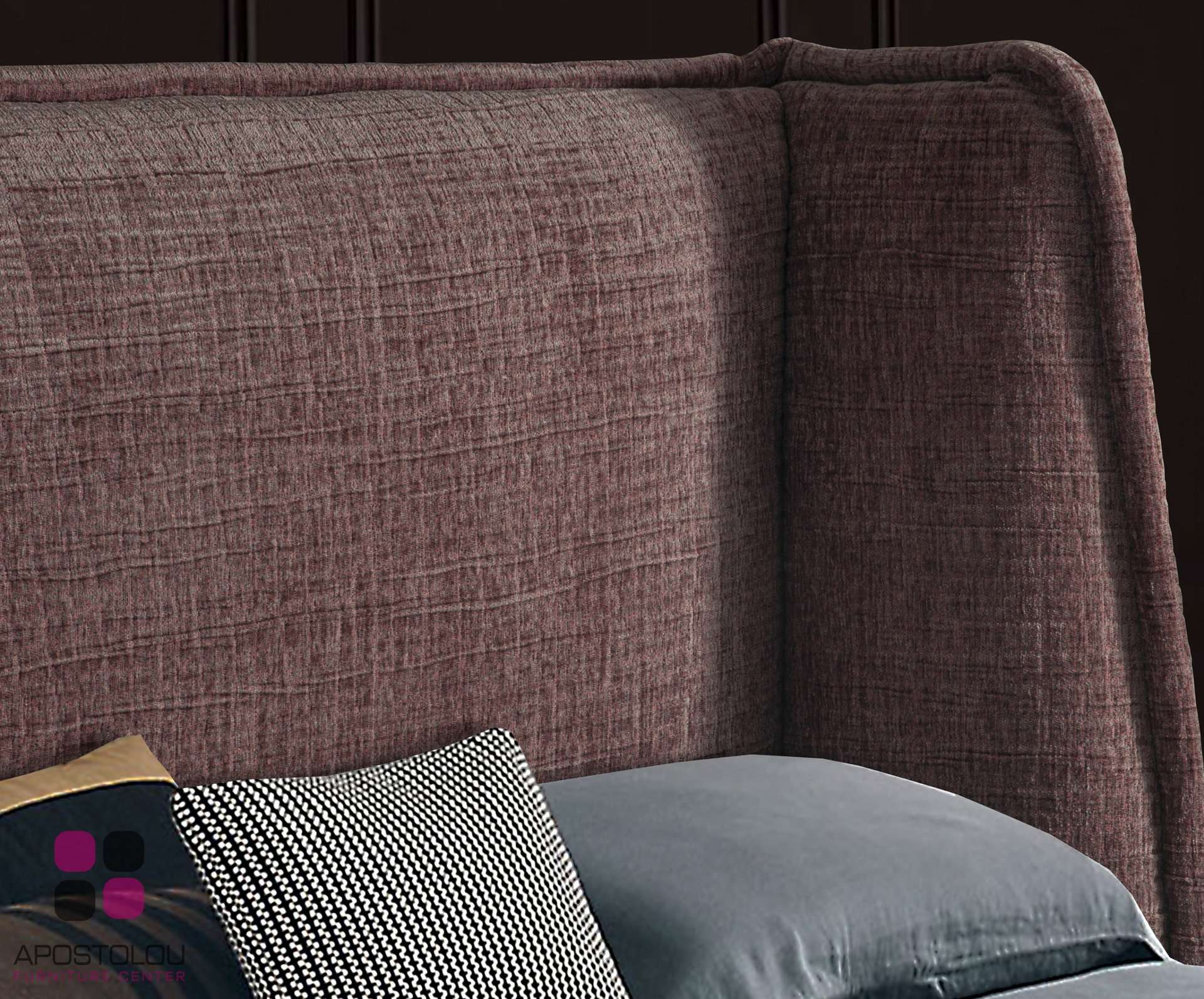 Ντυμένο κρεβάτι με μοντέρνο ύφος υψηλής αισθητικής με ψηλό και επιβλητικό κεφαλάρι με χειροποίητο ράψιμο. Παράγετε σε πολλές διαστάσεις και μεγάλη ποικιλία αδιάβροχων και easy-clean υφασμάτων.