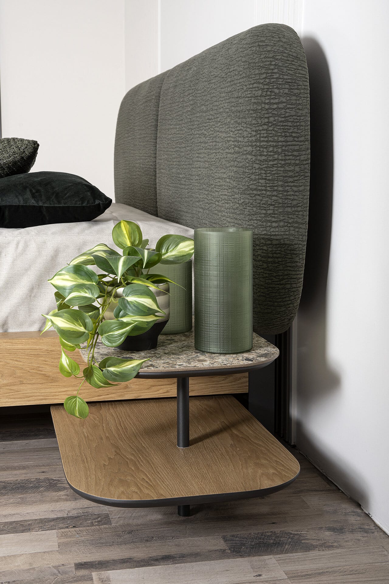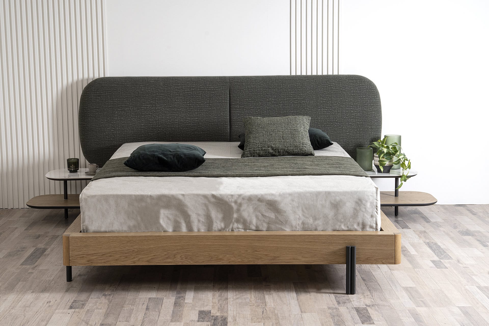 Ένα μοντέλο κατασκευασμένο από ξύλο δρυ και ύφασμα easy clean, σχεδιασμός που εντυπωσιάζει και τραβάει τα βλέμματα.