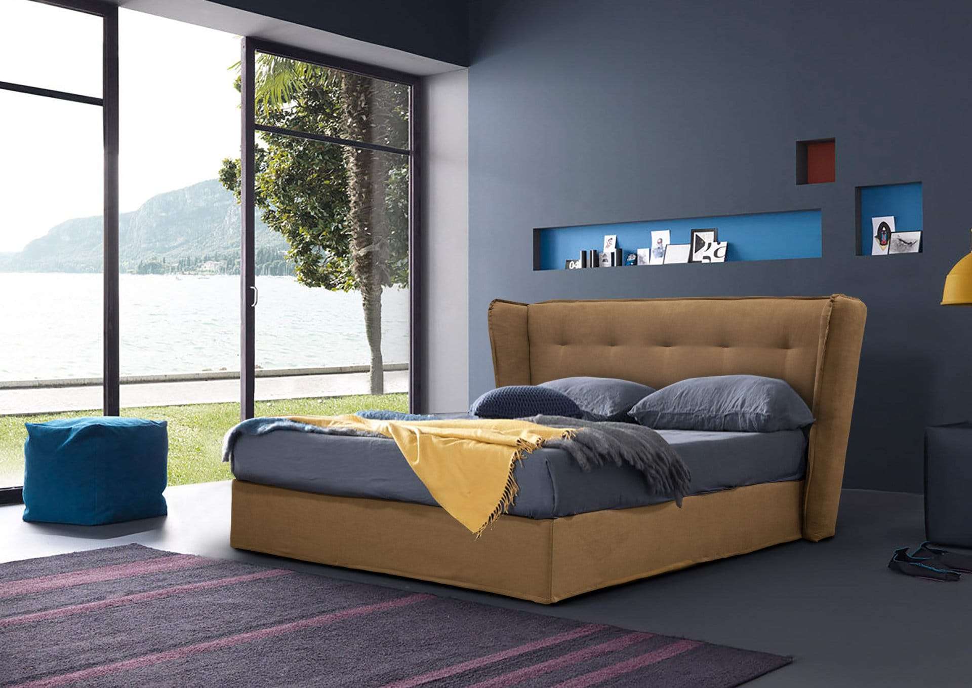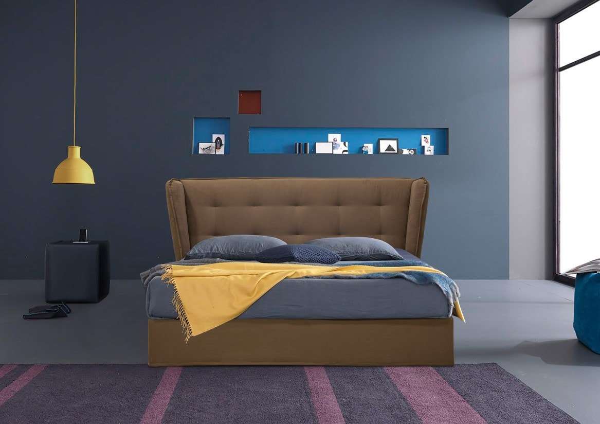 Ντυμένο κρεβάτι με μοντέρνο ύφος υψηλής αισθητικής με ψηλό και επιβλητικό κεφαλάρι του με χειροποίητο ράψιμο. Παράγετε σε πολλές διαστάσεις και μεγάλη ποικιλία αδιάβροχων και easy-clean υφασμάτων.