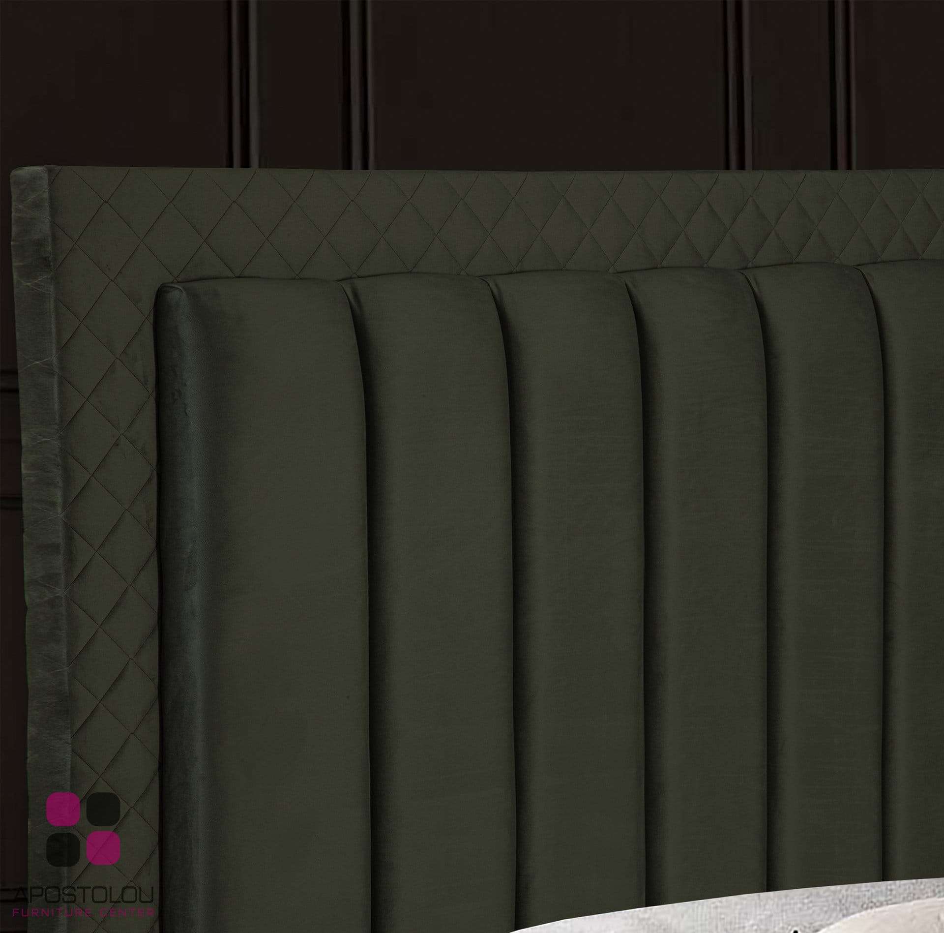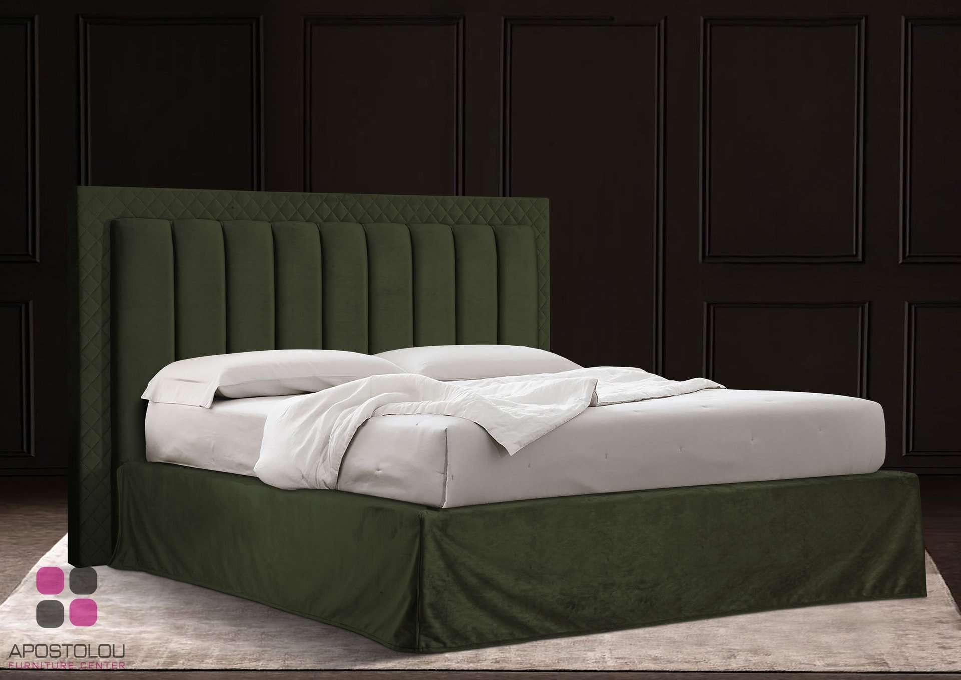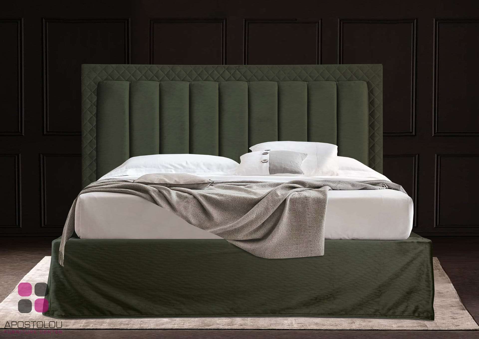 Ντυμένο κρεβάτι με μοντέρνο ύφος υψηλής αισθητικής με ψηλό και επιβλητικό κεφαλάρι με χειροποίητο ράψιμο. Παράγετε σε πολλές διαστάσεις και μεγάλη ποικιλία αδιάβροχων και easy-clean υφασμάτων.