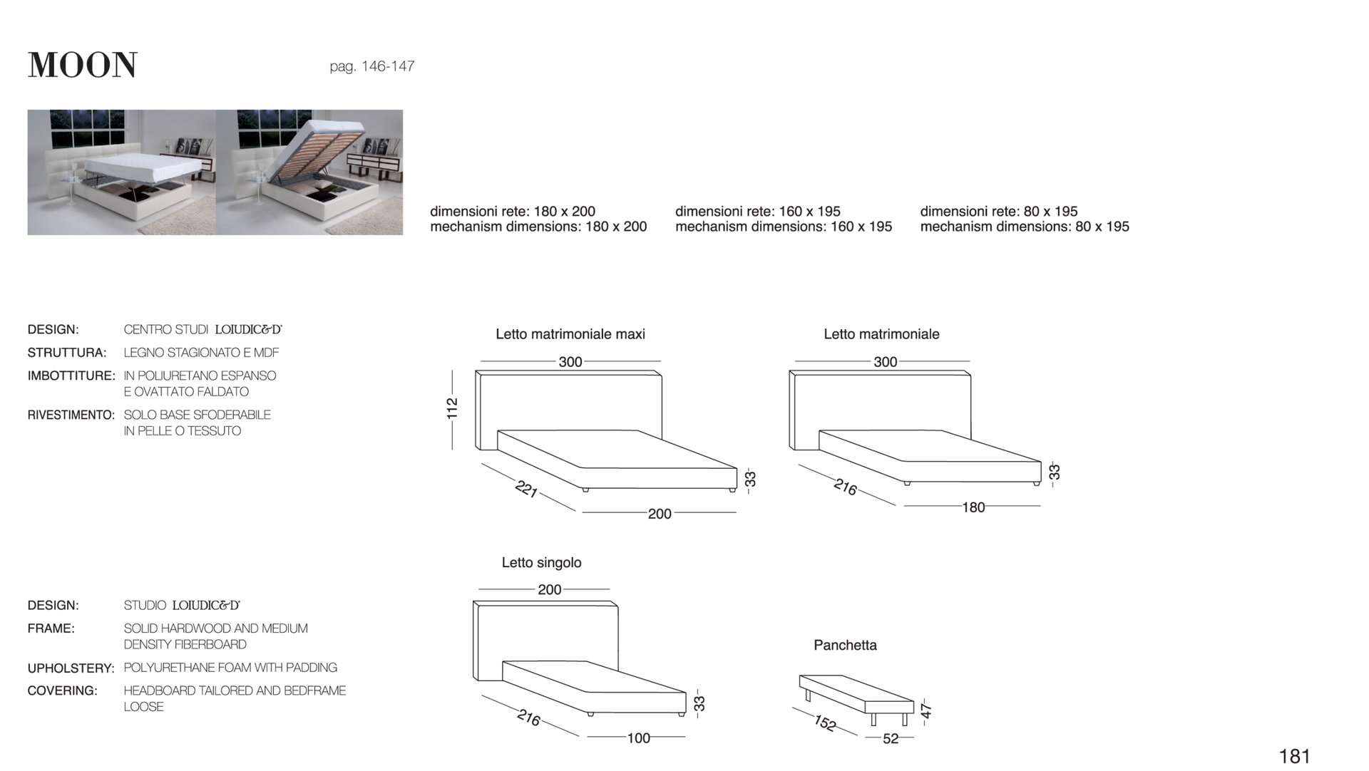 Κρεβάτι Moon δέρμα Ιταλίας Made in Italy Κεφαλάρι : 300 x 112h cm Βάση plus: 180 x 216cm - (για στρώμα 160 x 195 cm). Διαθέτει σκελετό από ξύλο οξιάς και λευκής ξυλείας Το ύφασμα της βάσης είναι αποσπώμενο για τον εύκολο καθαρισμό ή αντικατάστασή του. Υπάρχει η δυνατότητα τοποθέτησης αποθηκευτικού χώρου. Στην τιμή δεν περιλαμβάνεται το στρώμα. Η χρωματική απόχρωση του προϊόντος ενδέχεται να διαφέρει ελαφρώς σε σχέση με την φωτογραφική απεικόνισή του στην οθόνη σας. Διατίθεται σε ύφασμα ή γνήσιο δέρμα της επιλογής σας.