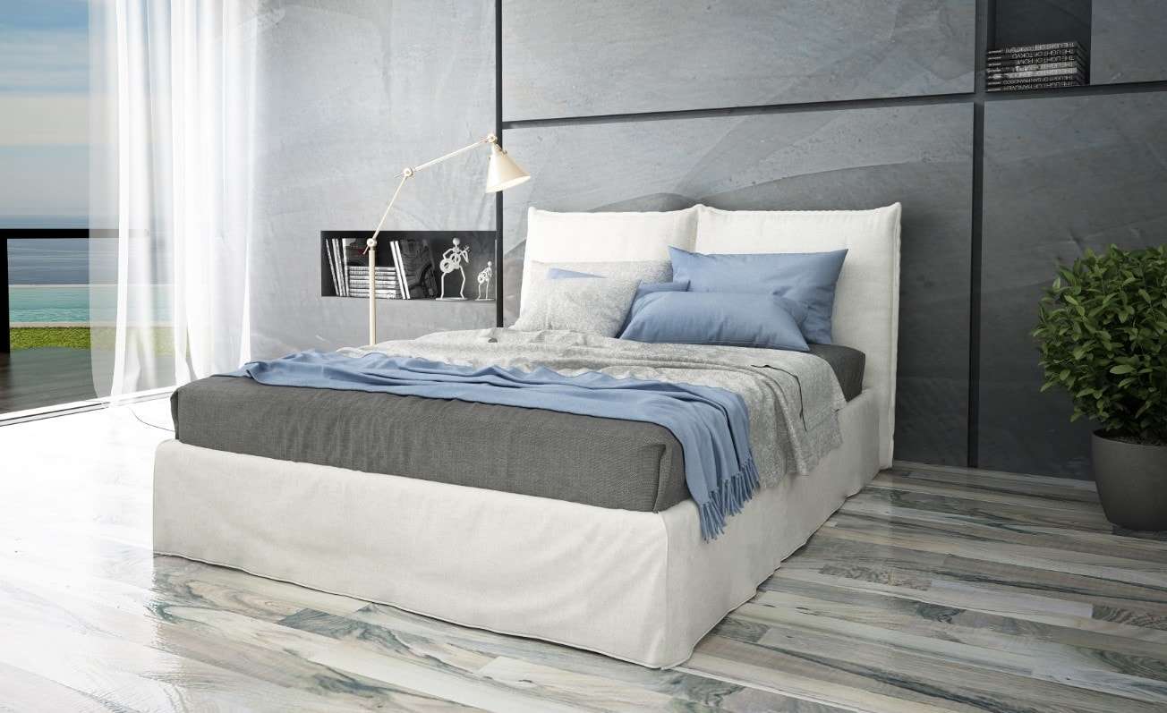 Ντυμένο κρεβάτι με μοντέρνο ύφος υψηλής αισθητικής με ψηλό και επιβλητικό κεφαλάρι του με χειροποίητο ράψιμο και φορετό. Παράγετε σε πολλές διαστάσεις και μεγάλη ποικιλία αδιάβροχων και easy-clean υφασμάτων.