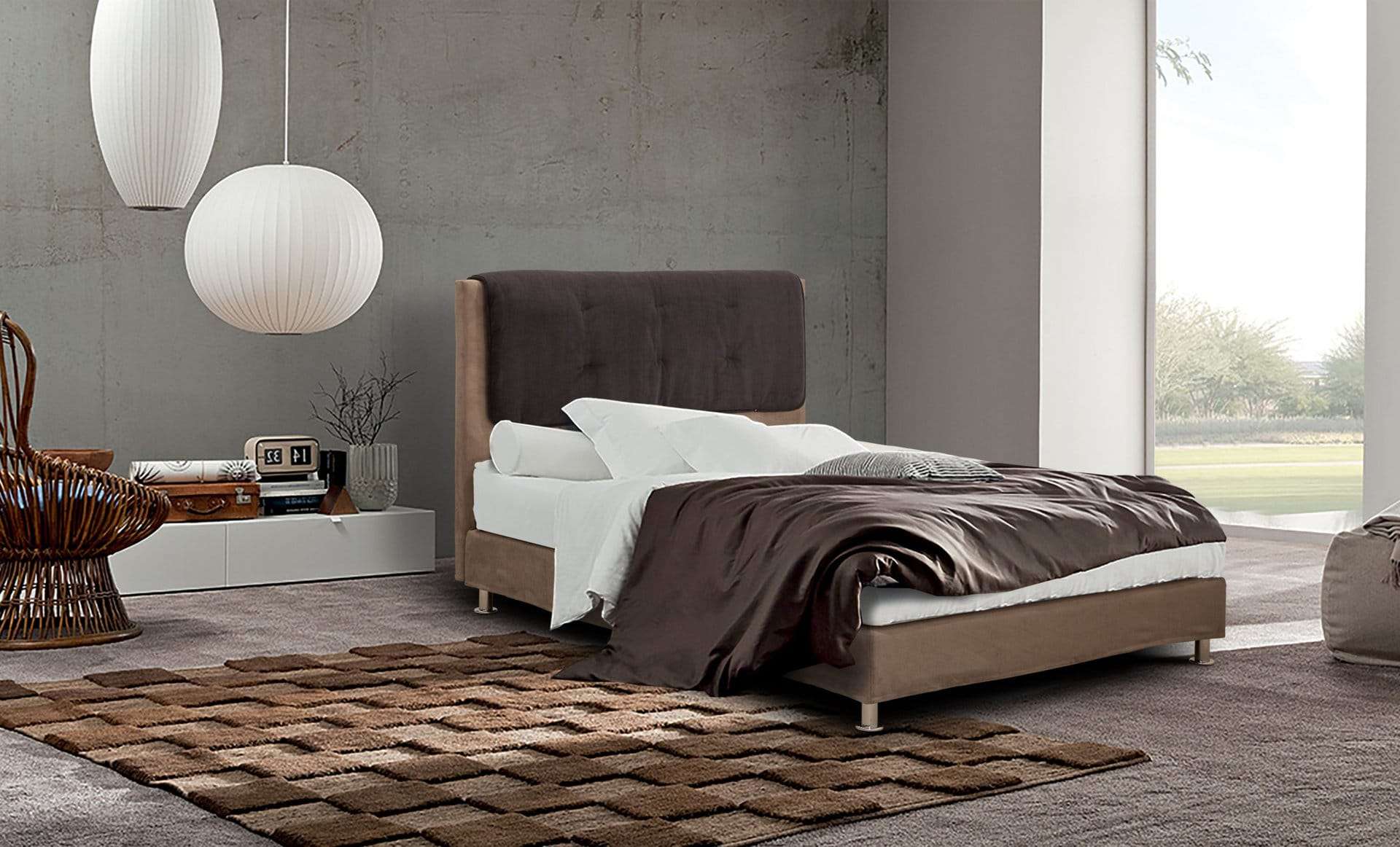 Ντυμένο κρεβάτι με μοντέρνο ύφος υψηλής αισθητικής με ψηλό και επιβλητικό κεφαλάρι του με χειροποίητο ράψιμο και φορετό. Παράγετε σε πολλές διαστάσεις και μεγάλη ποικιλία αδιάβροχων και easy-clean υφασμάτων.