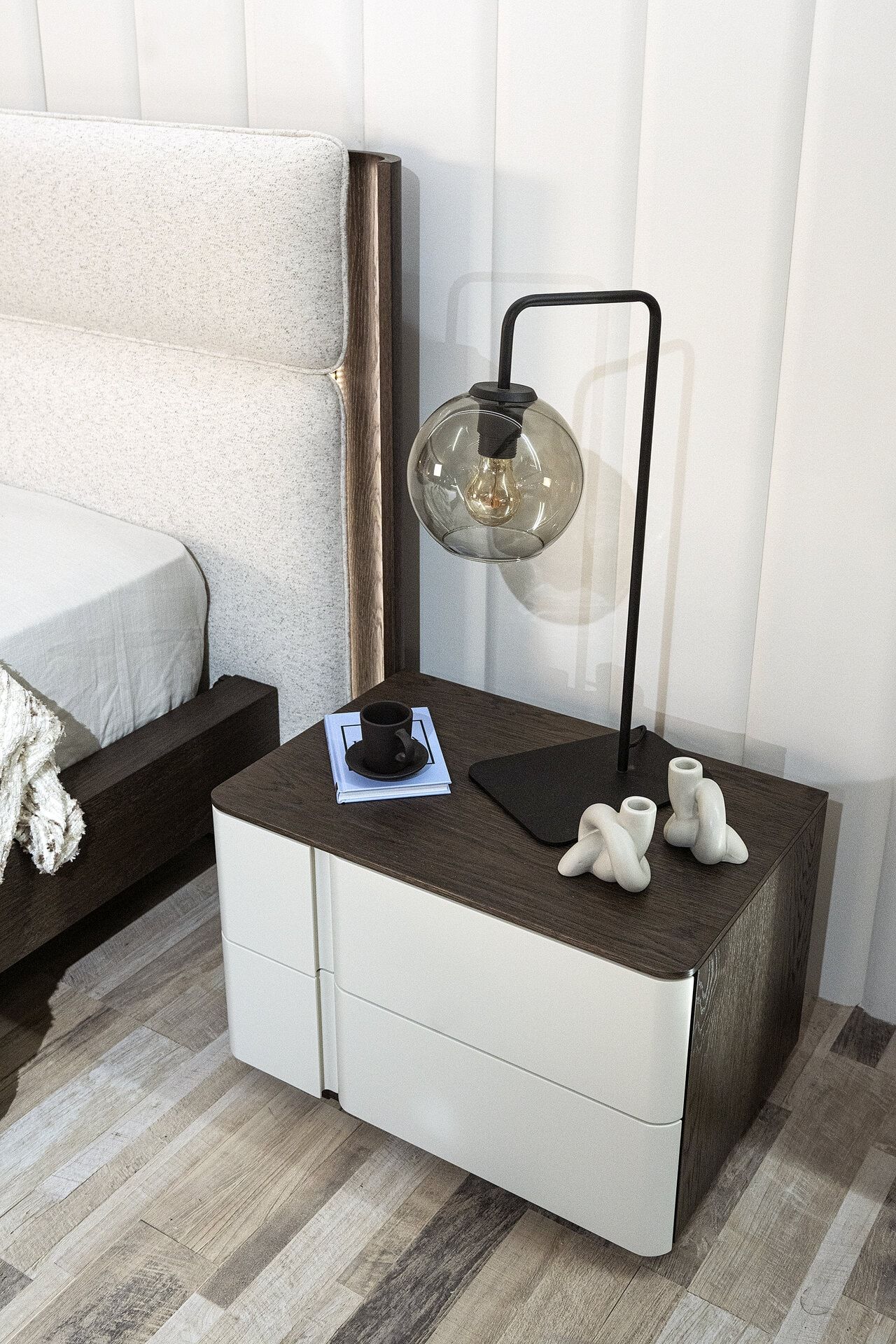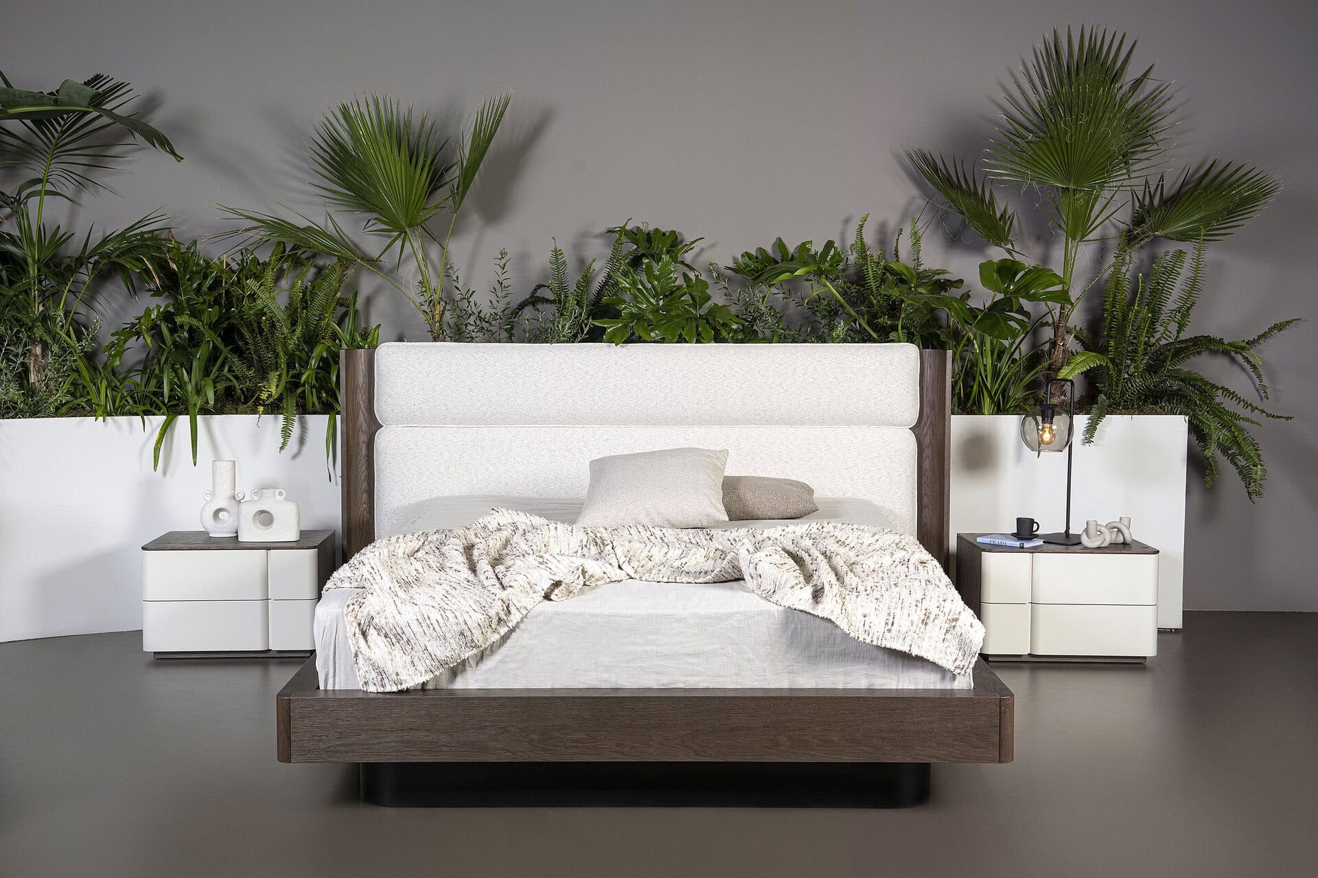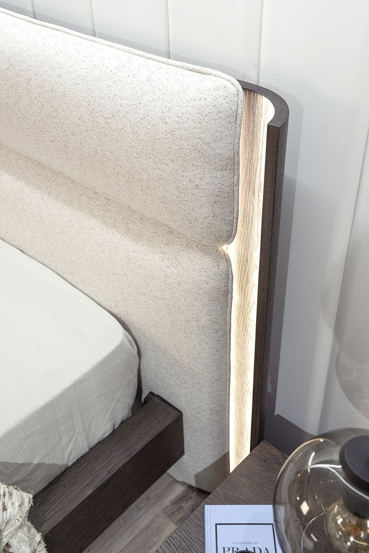 Ένα μοντέλο κατασκευασμένο από ξύλο δρυ και ύφασμα easy clean, που εντυπωσιάζει τόσο αισθητικά όσο και λειτουργικά με την προσθήκη του φωτισμού στο κεφαλάρι.