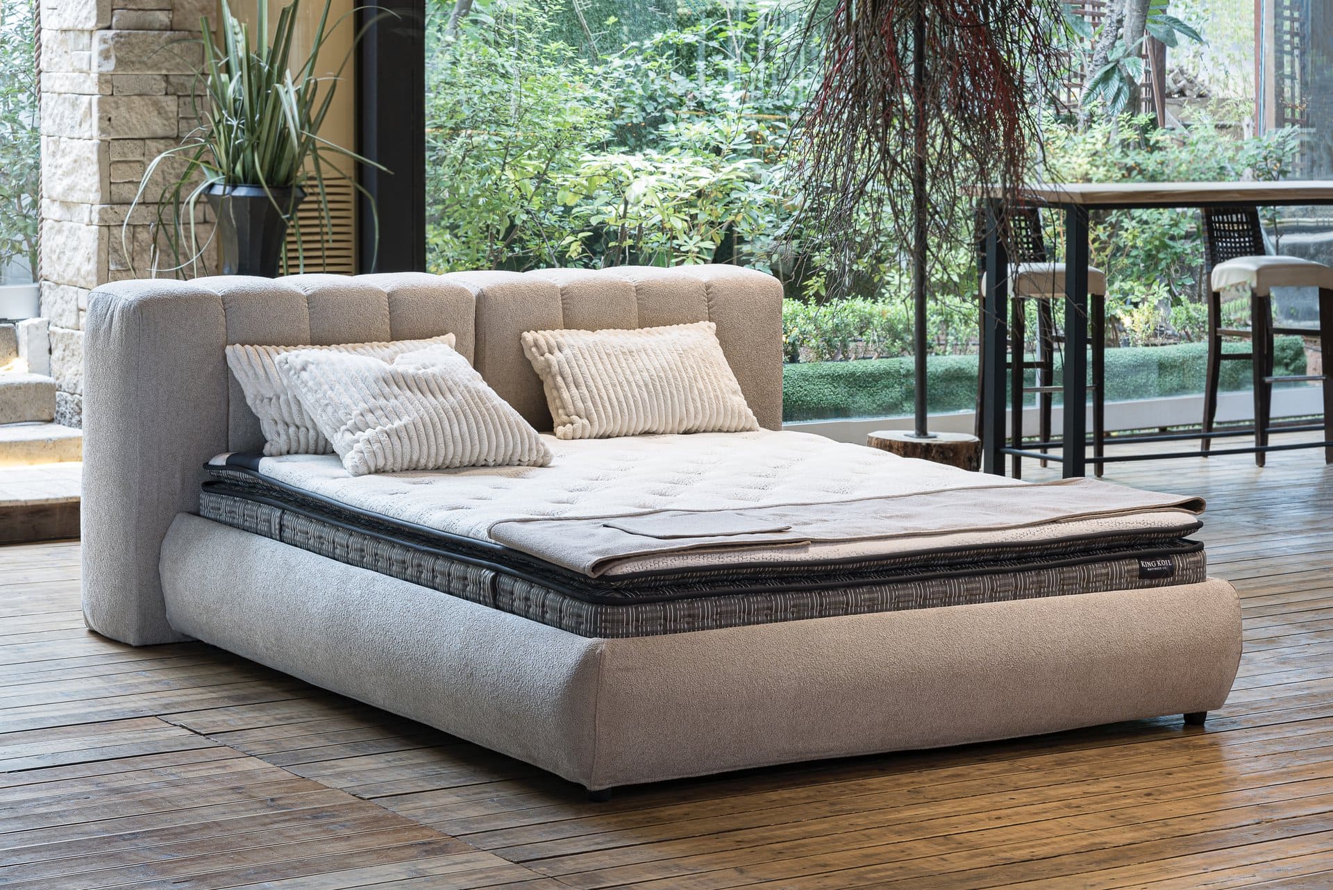 Ντυμένο κρεβάτι με μοντέρνο ύφος υψηλής αισθητικής, ψηλό και επιβλητικό κεφαλάρι με χειροποίητο ράψιμο. Παράγετε σε πολλές διαστάσεις και μεγάλη ποικιλία αδιάβροχων και easy-clean υφασμάτων.