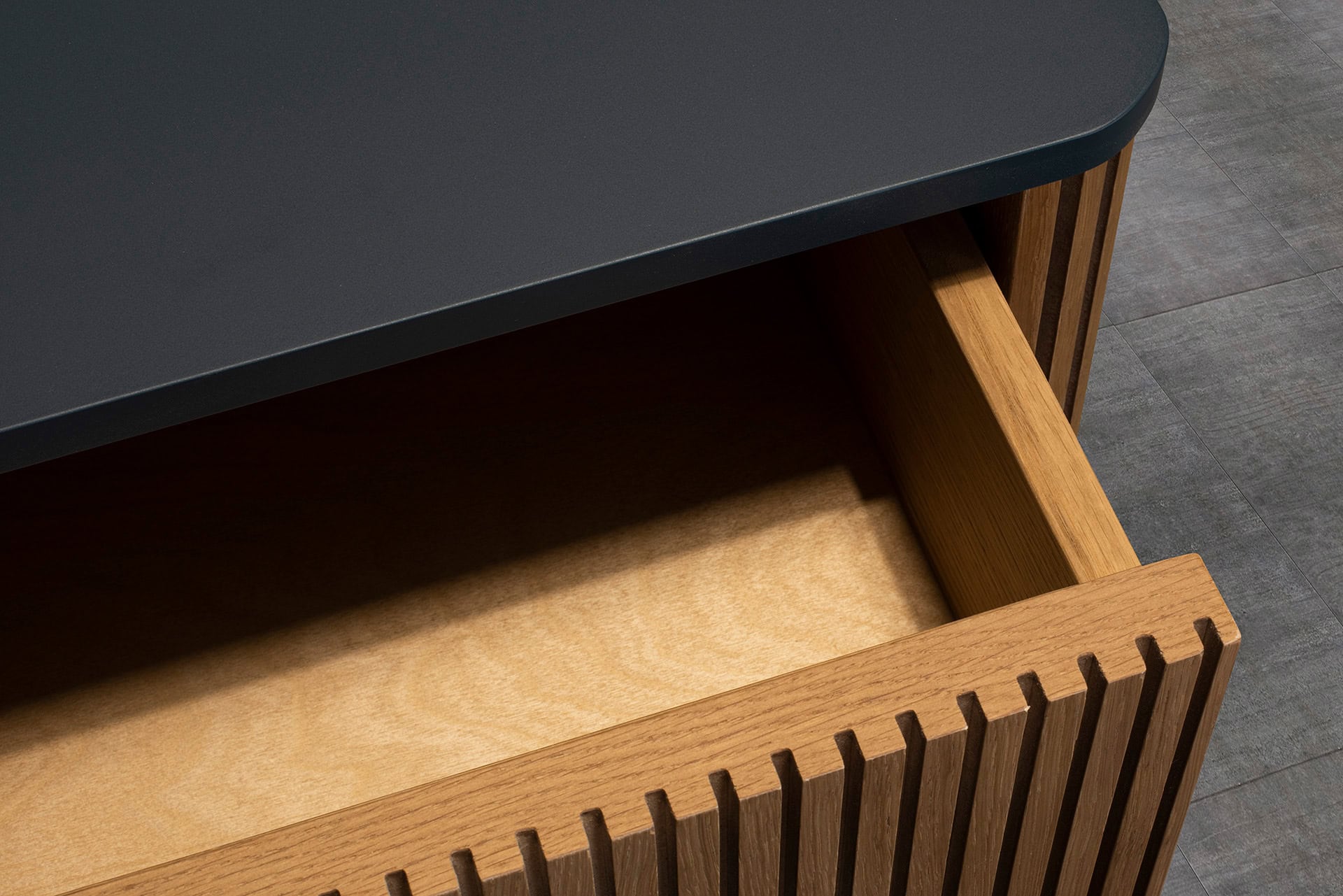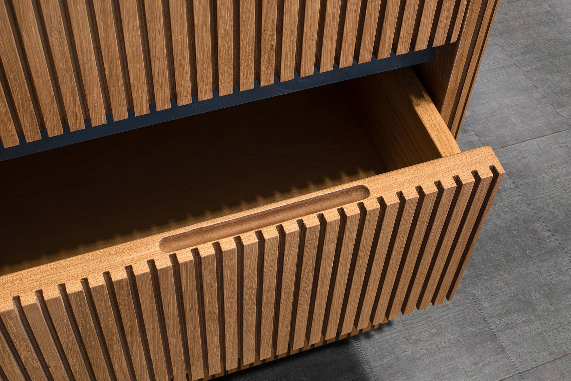 Ένα μοντέλο κατασκευασμένο από ξύλο δρυ και σε συνδυασμό με μαίφ πηχάκια στα κομοδίνα και στην τουαλέτα που θα τραβήξει τα βλέμματα.